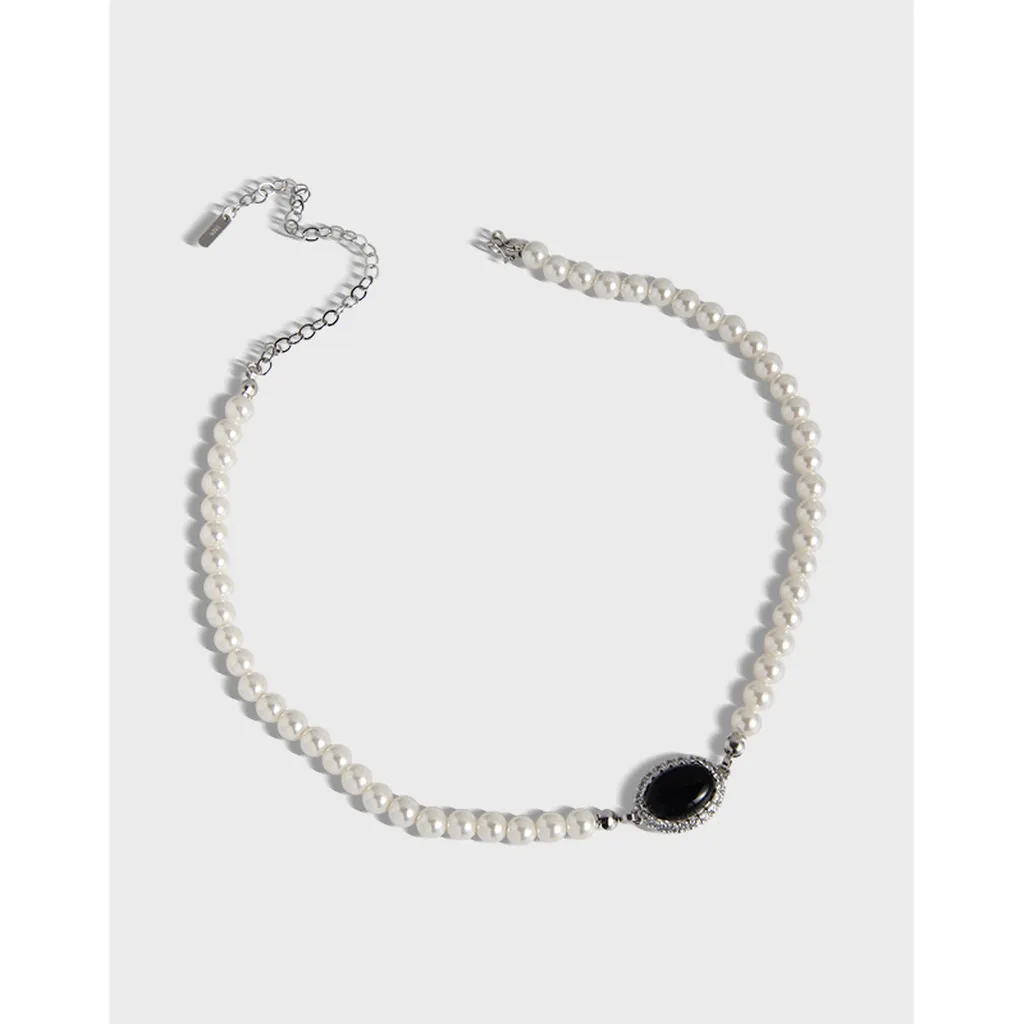 Celestial Harmony: Pearl and Onyx Statement Necklace