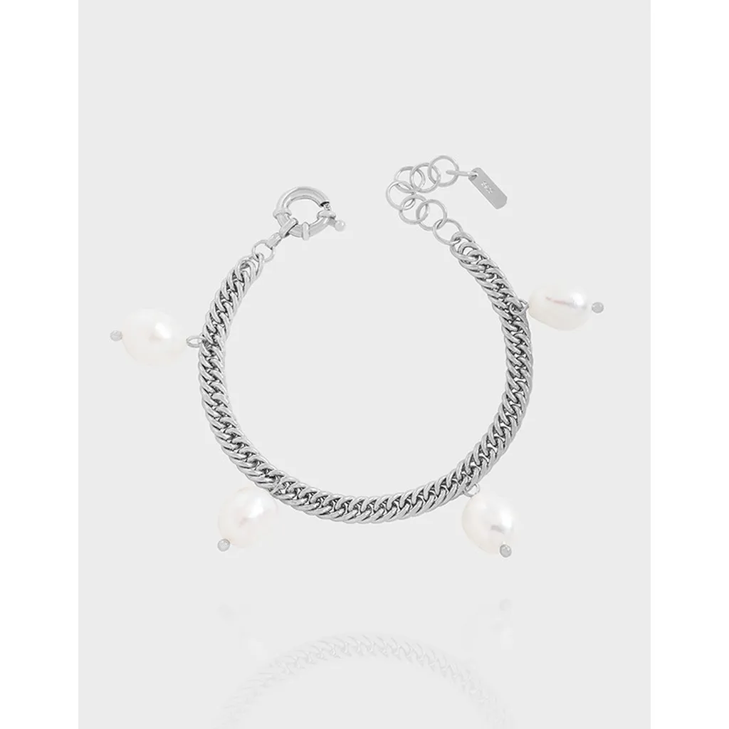 Celestial Glow: Silver Chain & Baroque Pearl Bracelet