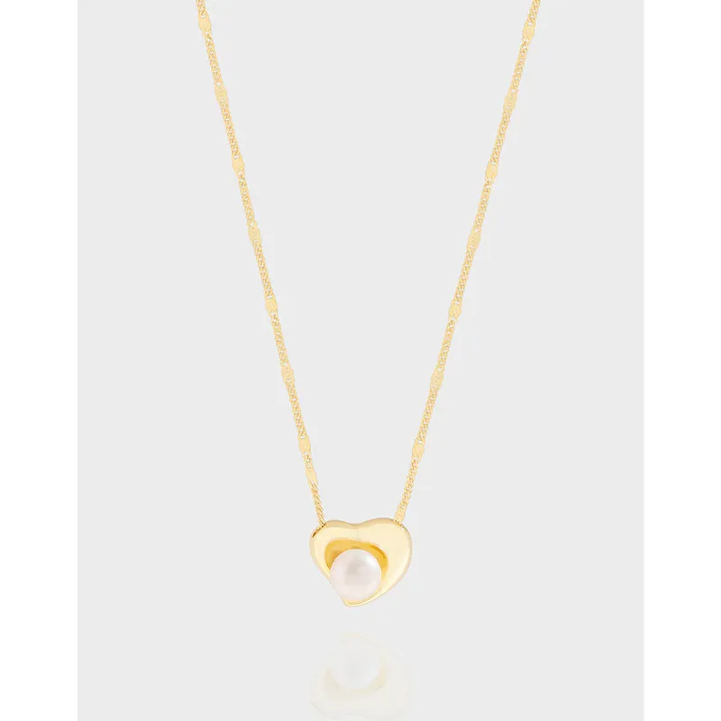 • Patterns & Textures: The chain exhibits a unique texture with alternating polished, elongated links and subtle twisted segments, creating a shimmering, ever-changing flow. The heart pendant boasts a smooth, curvaceous gold form that organically cradles the pearl, whose surface offers a soft, iridescent luster.