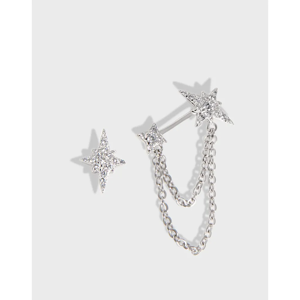 Dazzling Star Chain Earrings with Silver Tones