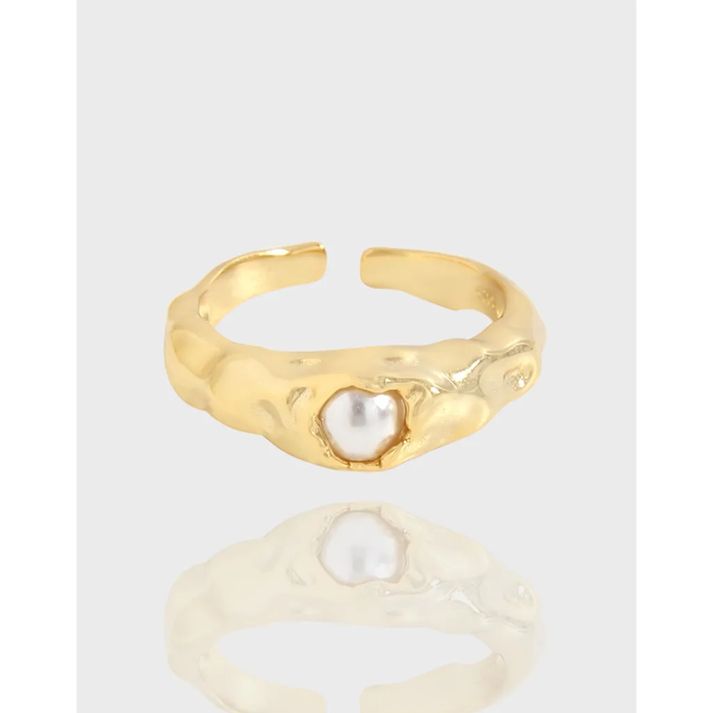 Malisse Golden Pearl Ring: Organic & Adjustable