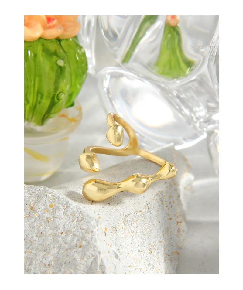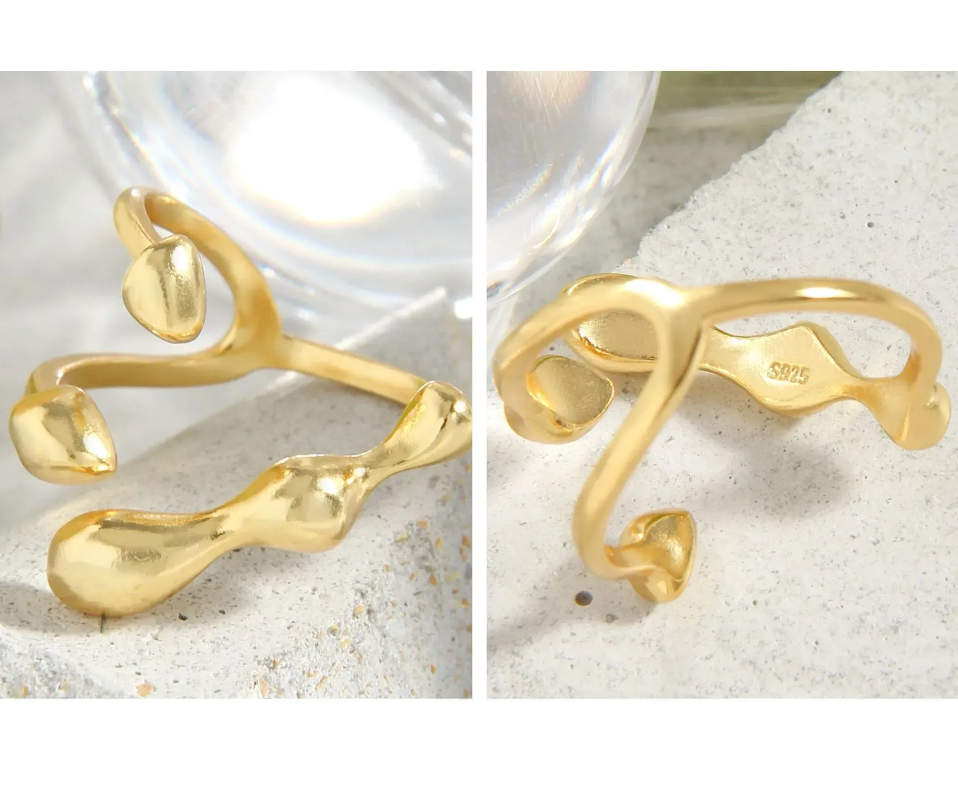 - Style: This open-design Lunadriel Ring features an organic, sculptural silhouette, inspired by the enchanting fluidity of molten gold or naturally occurring forms. Its abstract shape creates a unique, artful statement.