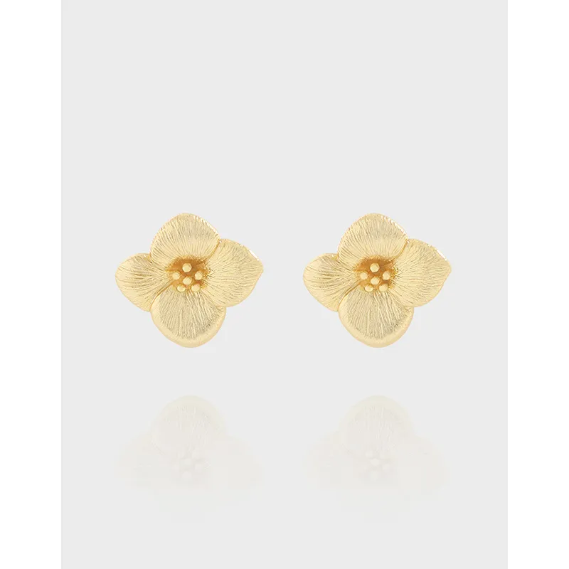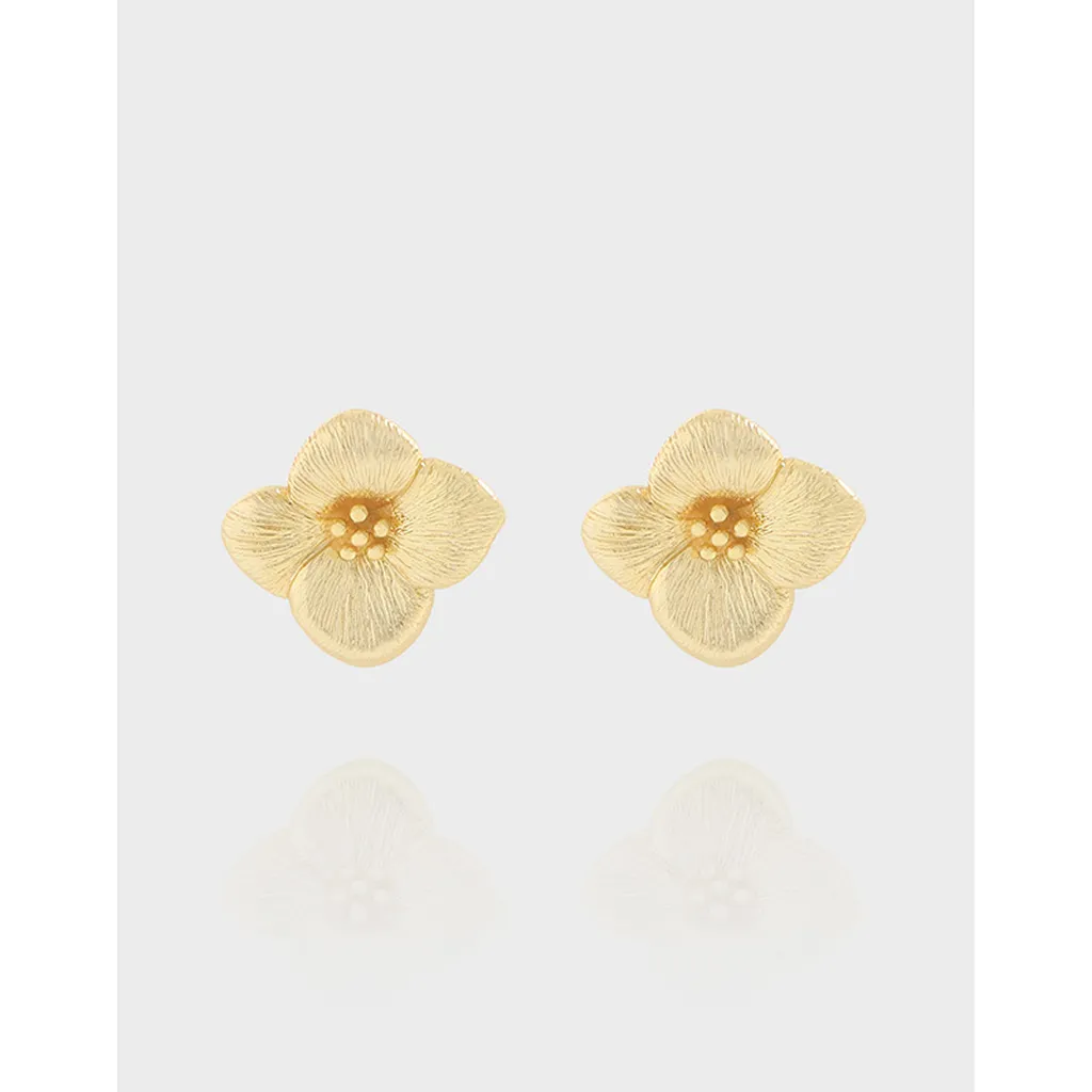 - Style: Delicate floral stud earrings, meticulously shaped into a four-petal bloom. Their fluid and organic silhouette brings an elegant touch inspired by the natural world.