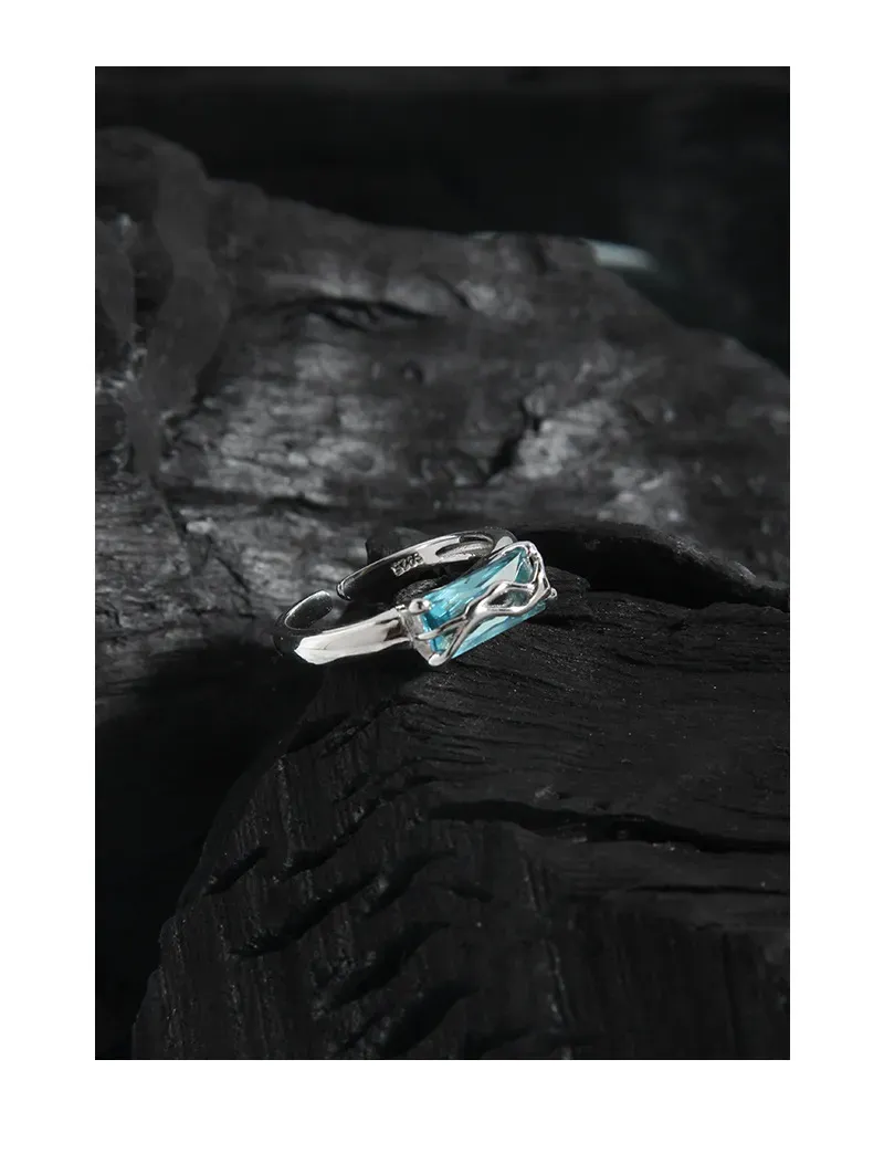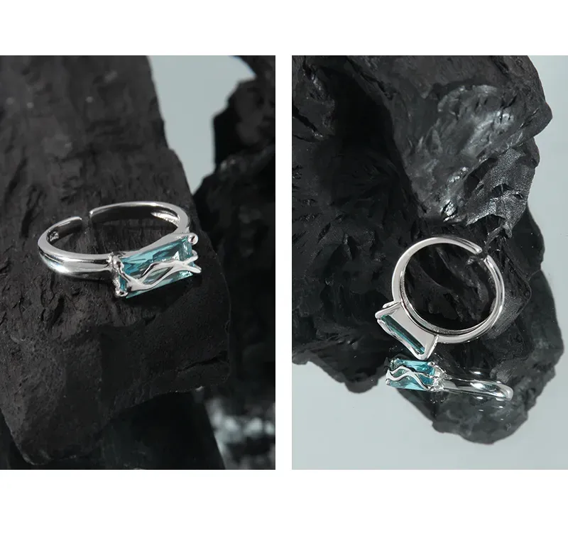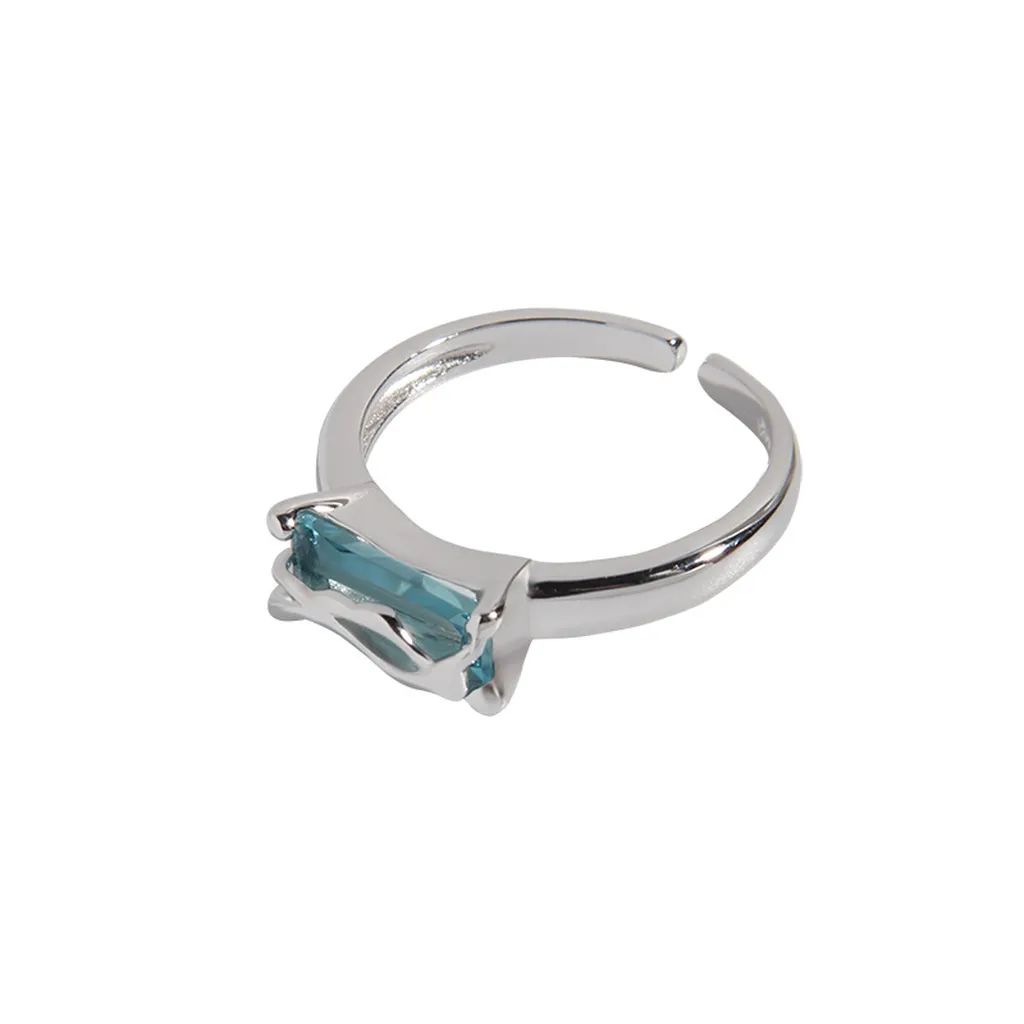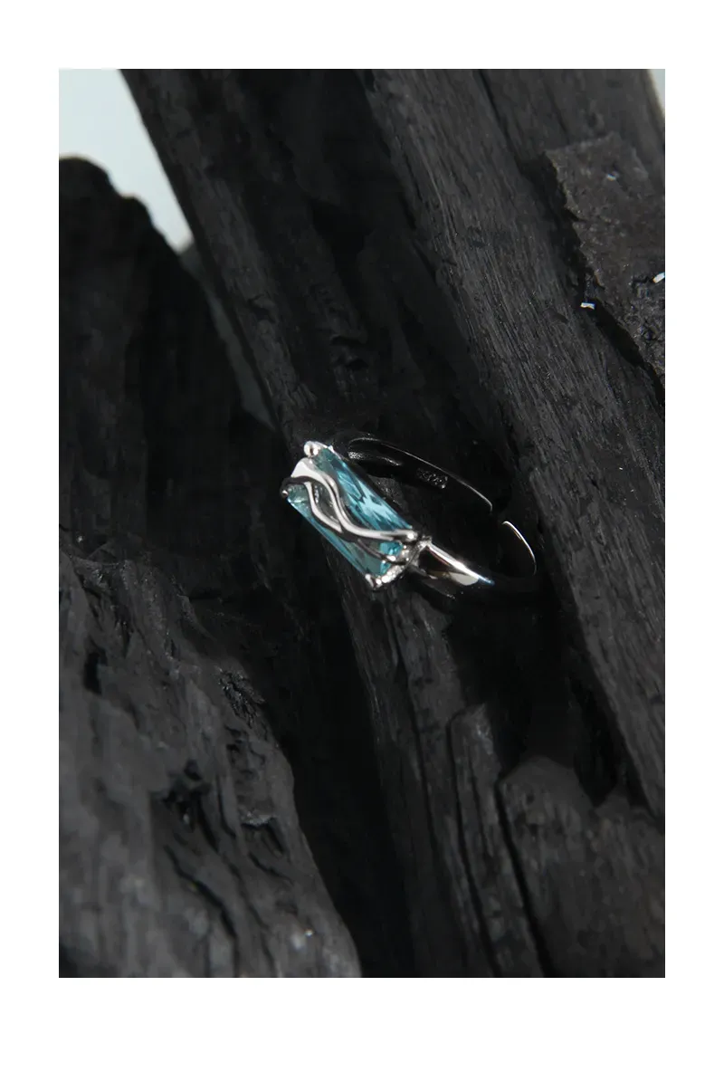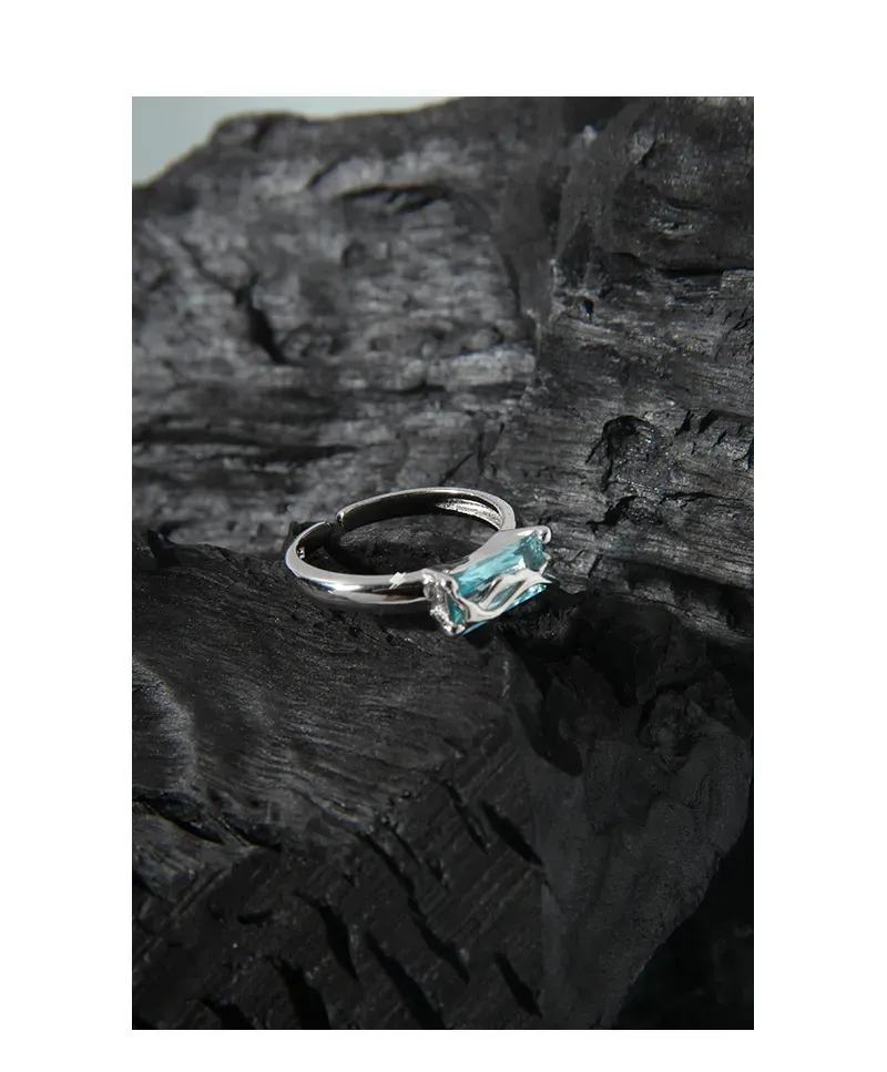 • Color: The Lunasai Ring features a highly polished silver band that offers a brilliant, reflective sheen. It cradles a mesmerizing baguette-cut gemstone in a delicate, celestial blue hue, reminiscent of serene sky or glacial waters, capturing Malisse’s signature celestial aesthetic.
