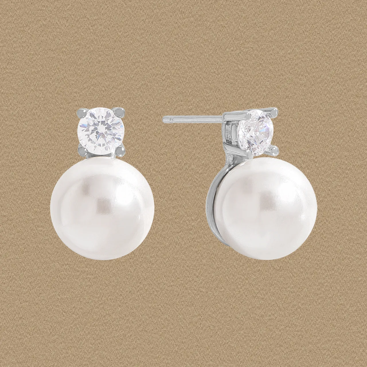 • Style: These elegant stud Lunata Earrings present a timeless drop silhouette. A sparkling cubic zirconia is securely prong-set at the earlobe, from which a perfectly spherical pearl gracefully suspends, cradled in a sleek, fluid silver-toned setting. This design offers a sophisticated and versatile look, mirroring the ever-changing brilliance and organic shapes Malisse celebrates.