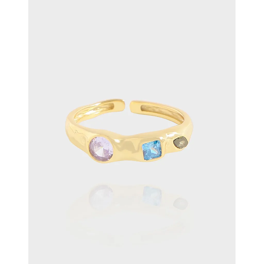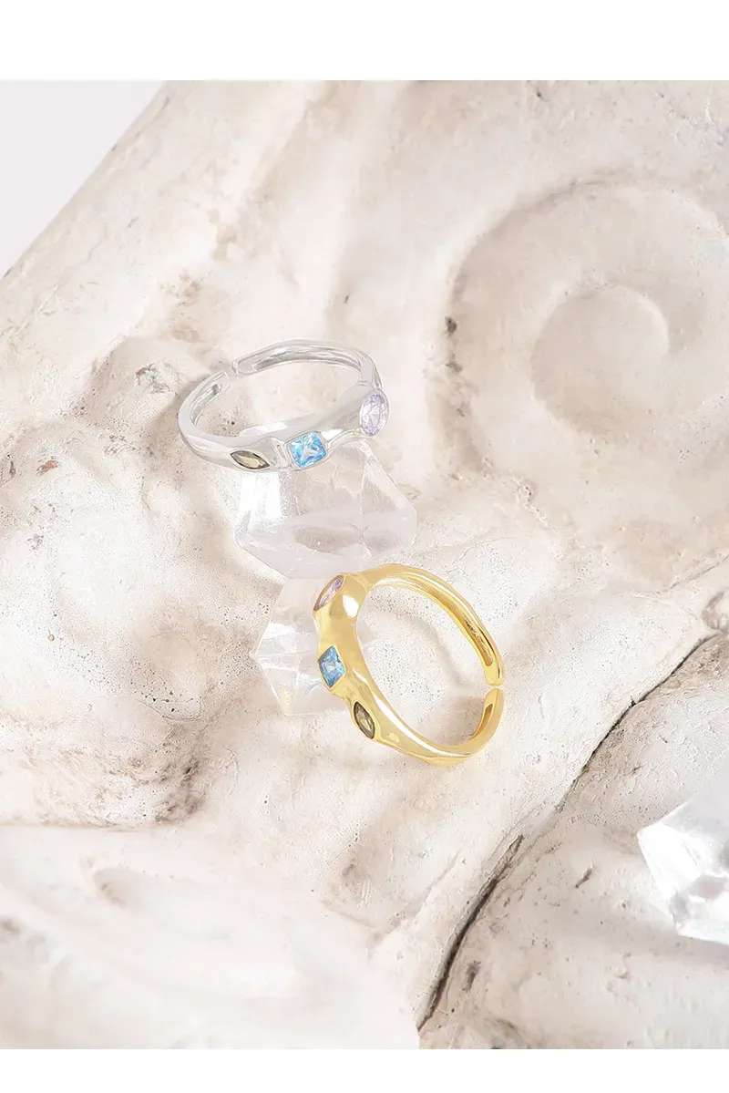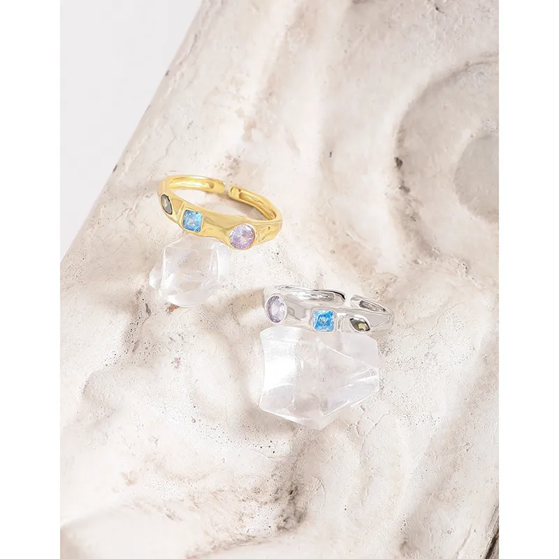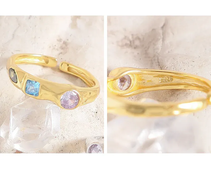 - Style: An adjustable open-band design ensures a comfortable fit, while the unique placement of the multi-colored gemstones creates a modern, asymmetrical aesthetic that is both playful and sophisticated.