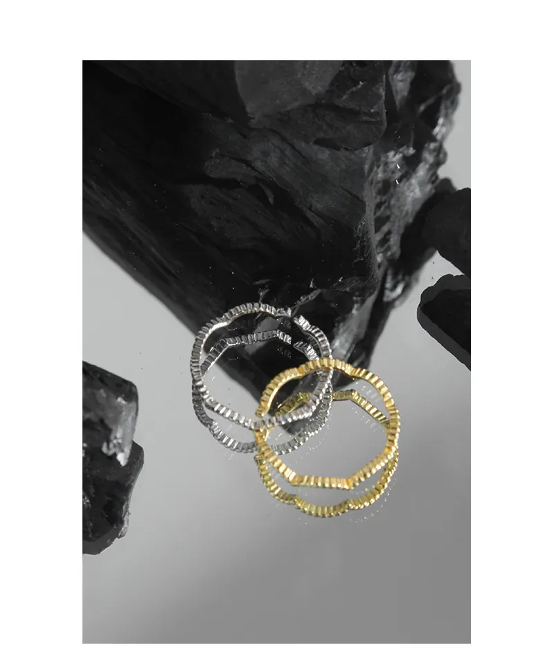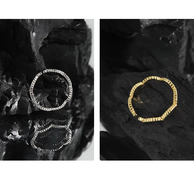 • Style: Featuring an open, adjustable design, its silhouette follows an imperfectly beautiful, wavy path, reminiscent of natural landscapes and fluid motion, embodying a delicate balance of elegance and raw charm.