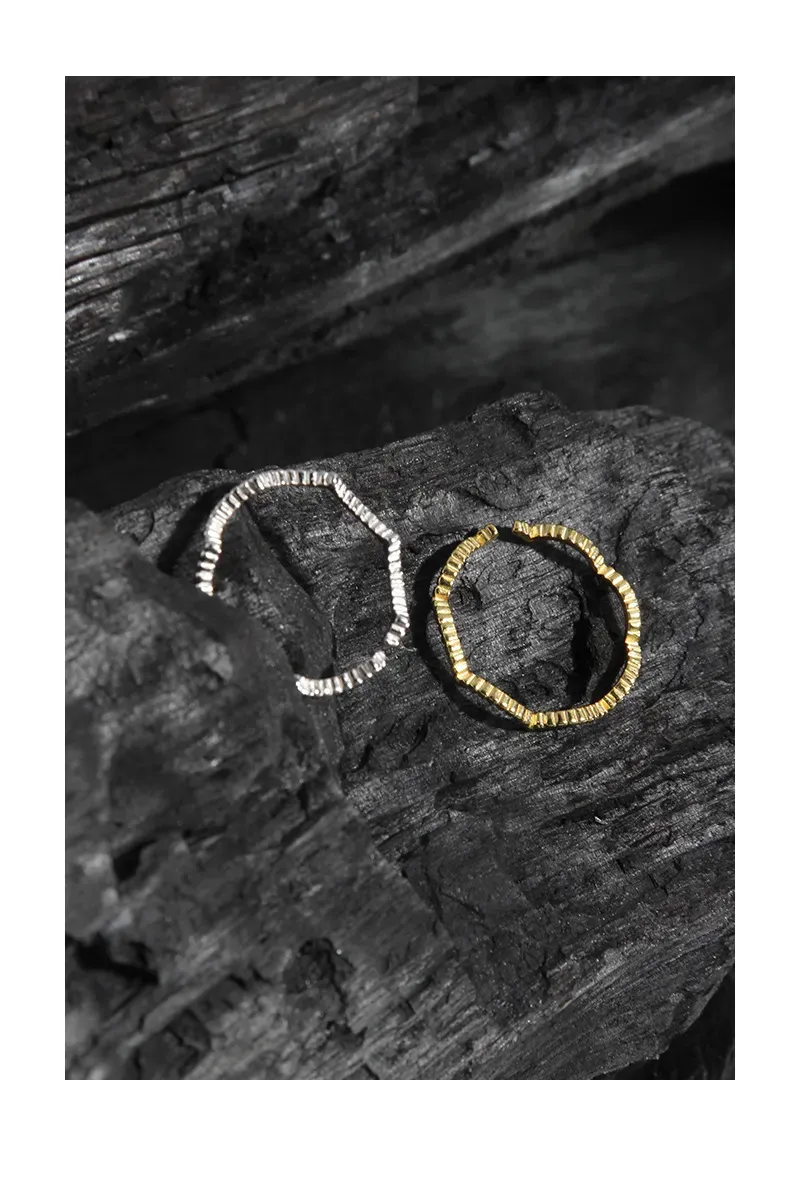 • Patterns & Textures: The entire band is crafted with a distinctive raw, ribbed texture, creating subtle, rhythmic segments that give it unique tactile depth and an organic, earthy feel, reflecting the imperfect beauty of nature’s patterns.