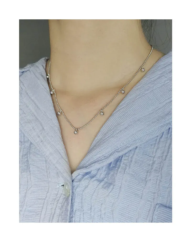 - Patterns/Textures: Fine ball chain with smooth, polished spherical dangling beads.