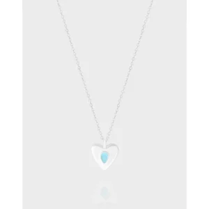 Patterns or Textures: Crafted with smooth, polished silver, the pendant offers a luminous, reflective texture. The central light blue teardrop inlay subtly introduces a hint of raw texture, celebrating the imperfect beauty of nature’s patterns. The delicate chain comprises finely linked textures, providing both strength and grace.
