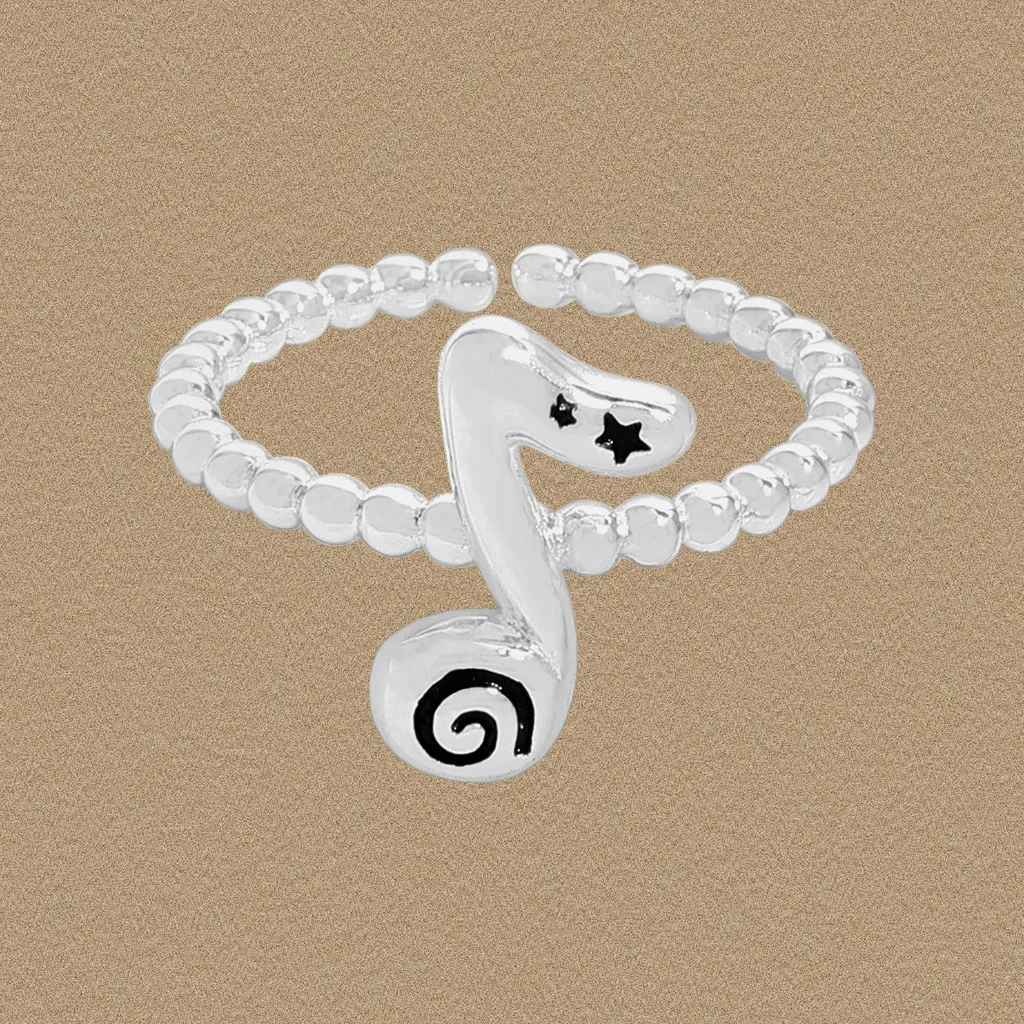 Embrace playful elegance with this delightful open-ended ring, meticulously crafted to capture a harmonious blend of shine and charm.