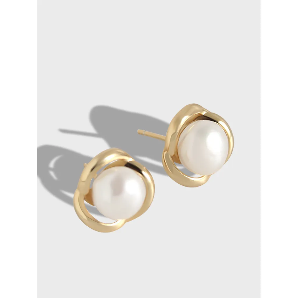 Organic Gold & Pearl Stud Earrings