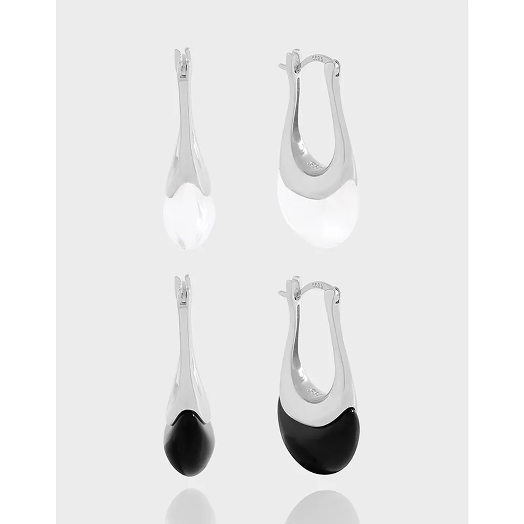 Color: Crafted from shimmering sterling silver, these Maelora Earrings are available in two captivating variations. One design features a lower segment of translucent, luminous white, evoking the ethereal glow of celestial light. The alternative design showcases a striking, deep black lower segment, reminiscent of the mystery and depth found in natural gemstones and the night sky.