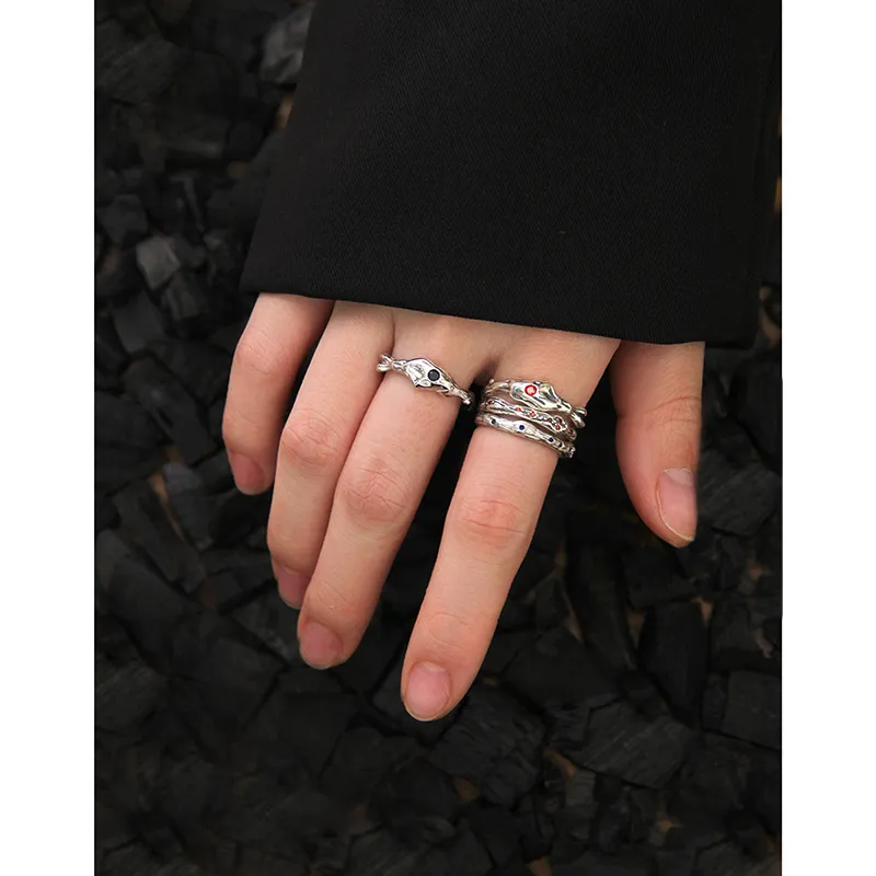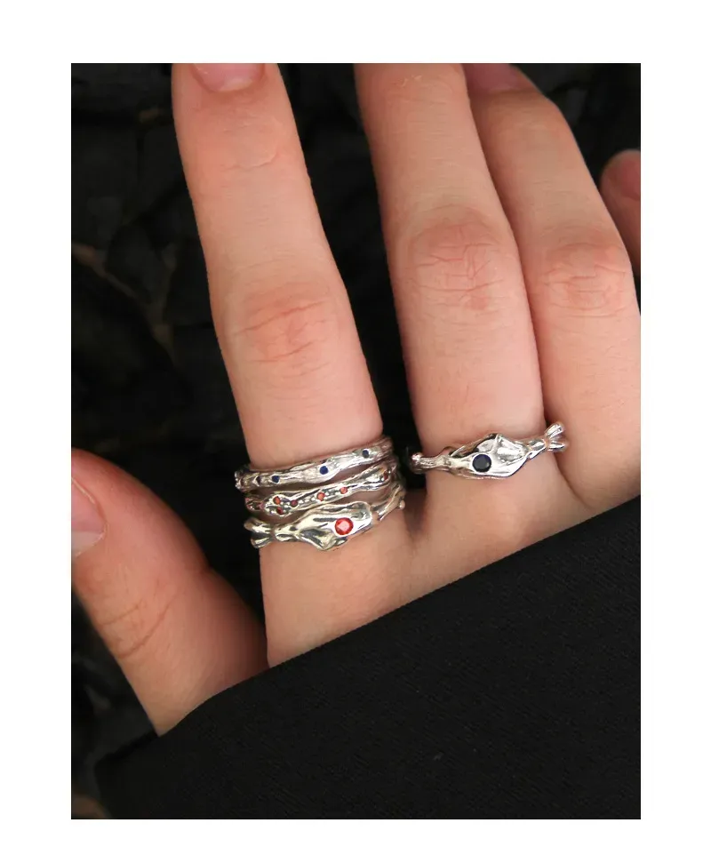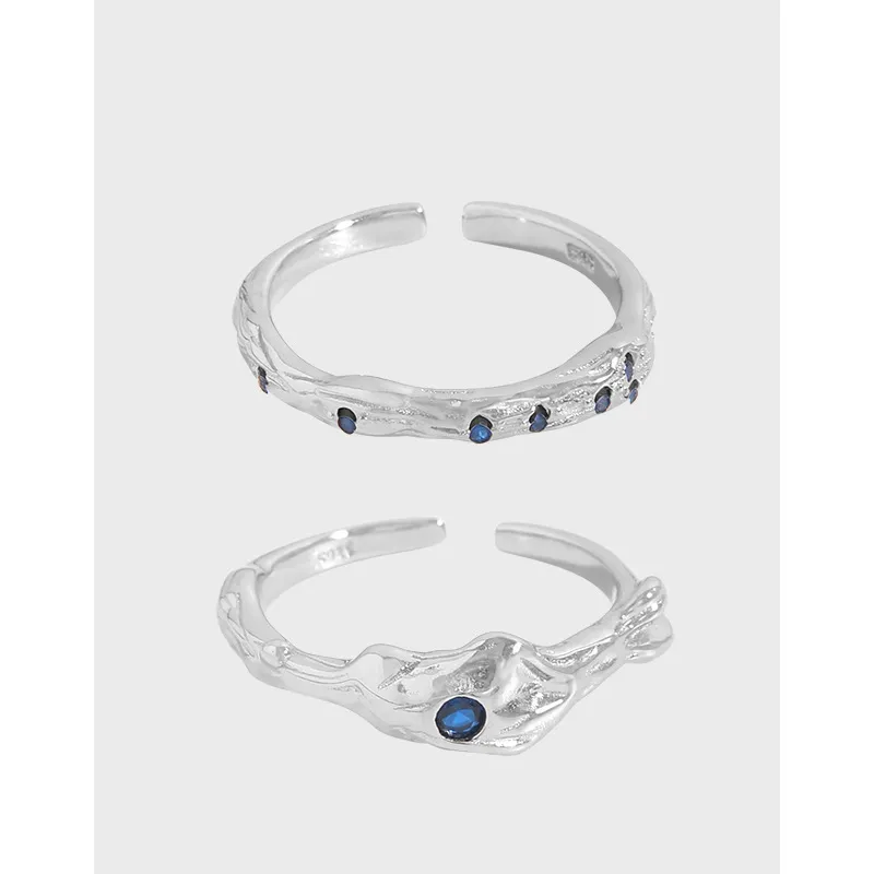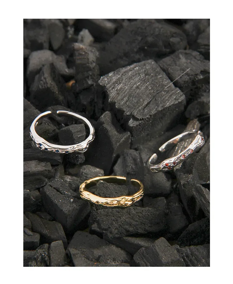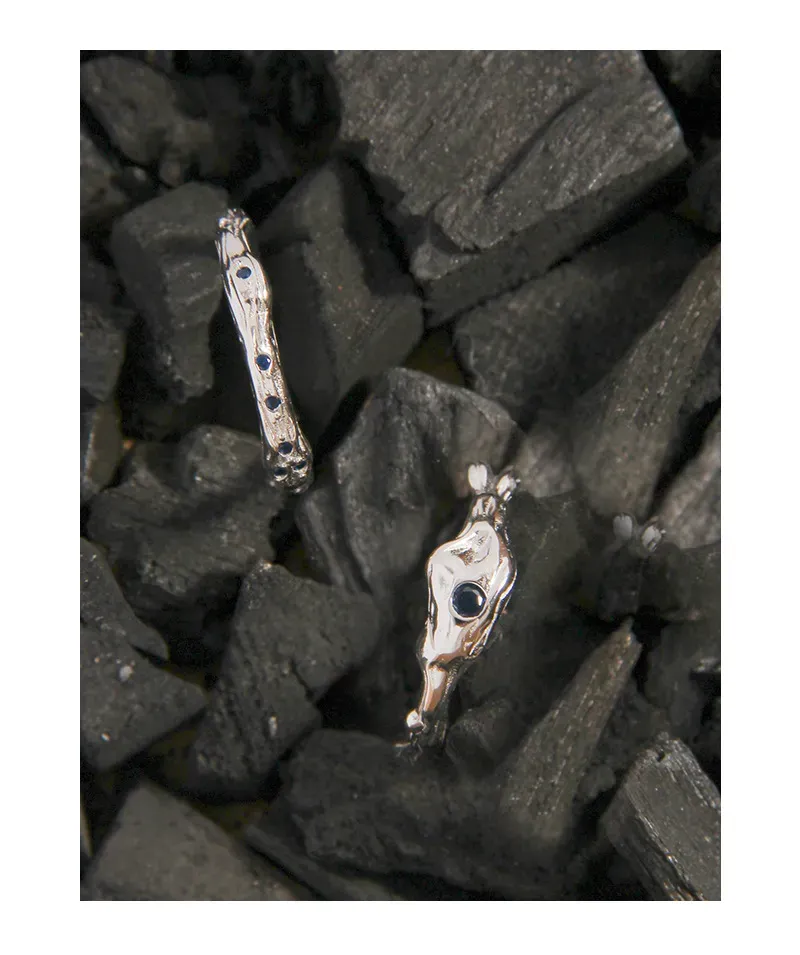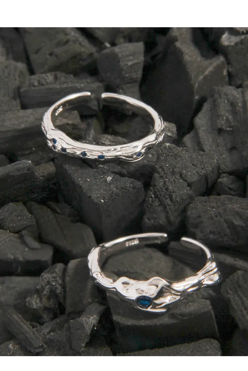 - Patterns & Textures: The ring’s band is characterized by a distinctive, raw, and tactile texture, mirroring the authentic patterns found in tree bark or weathered rock formations. Small, scattered blue gemstones adorn one variation, evoking a starlit path, while another presents a sculptural form cradling a single, prominent blue gem, reminiscent of a hidden natural wonder.
