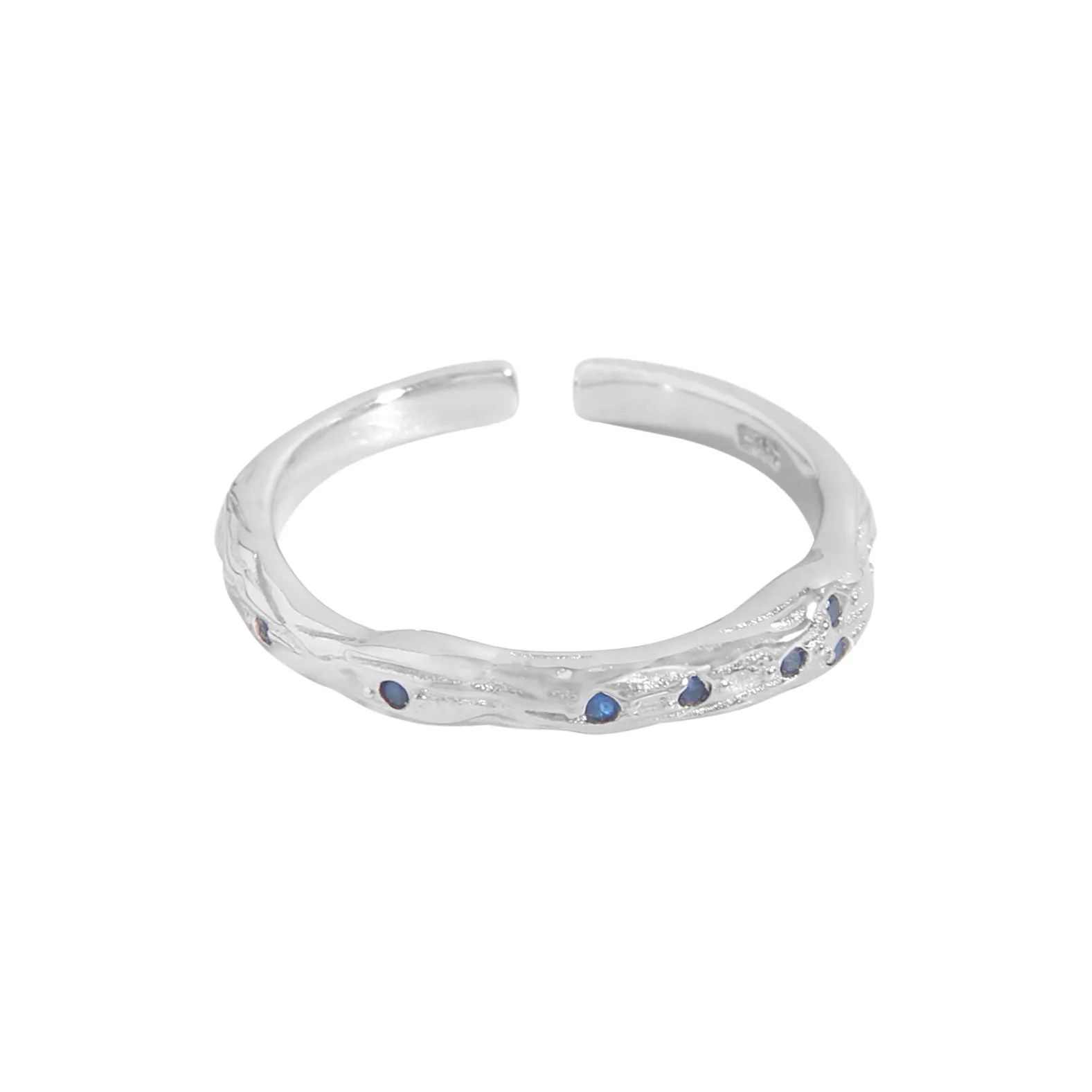 Nature-Inspired Silver Ring with Ethereal Blue Gems