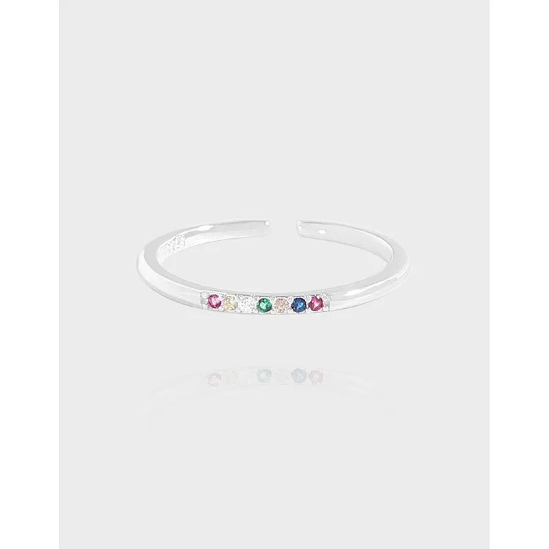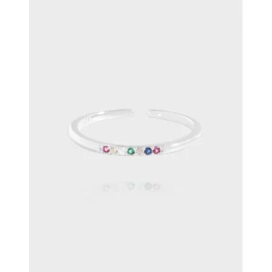 - Color: The sleek, bright silver band provides a pristine backdrop for a radiant array of multi-colored gemstones. These round, faceted stones shimmer in hues reminiscent of a celestial rainbow, featuMalyndria Ring vibrant shades of red, clear, emerald green, light blue, deep sapphire, and rose pink, capturing the essence of the northern lights.