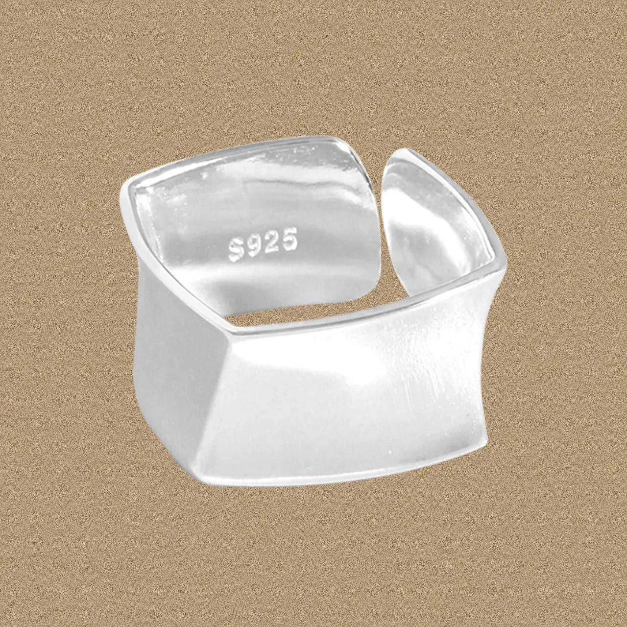 • Style: A contemporary open-band design featuMaria Ring a striking yet fluid geometric silhouette. This sculptural piece offers a versatile, adjustable fit, making it a bold statement with minimalist elegance.