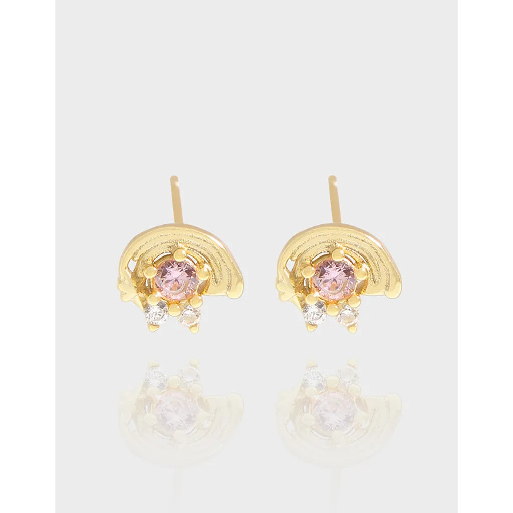 • Style: Celestial-inspired stud earrings, designed with a fluid, organic silhouette that elegantly frames the central gem, evoking the gentle curve of a rainbow or the captivating dance of light in the night sky.