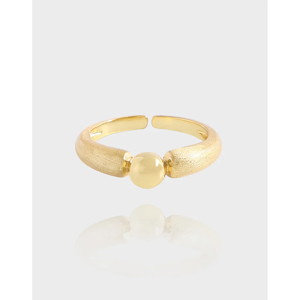 - Pattern: A smooth, perfectly polished gold sphere sits elegantly at the center, offeMaura Ring a striking contrast to the textured band and reflecting light with celestial grace.