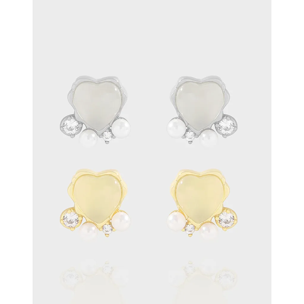 • Color: Features a choice of silver-toned or gold-toned metal. The central heart comes in either an ethereal opalescent white, reminiscent of moonlight, or a soft, creamy yellow hue. Both designs are accentuated with pristine white pearls and clear, sparkling cubic zirconia.