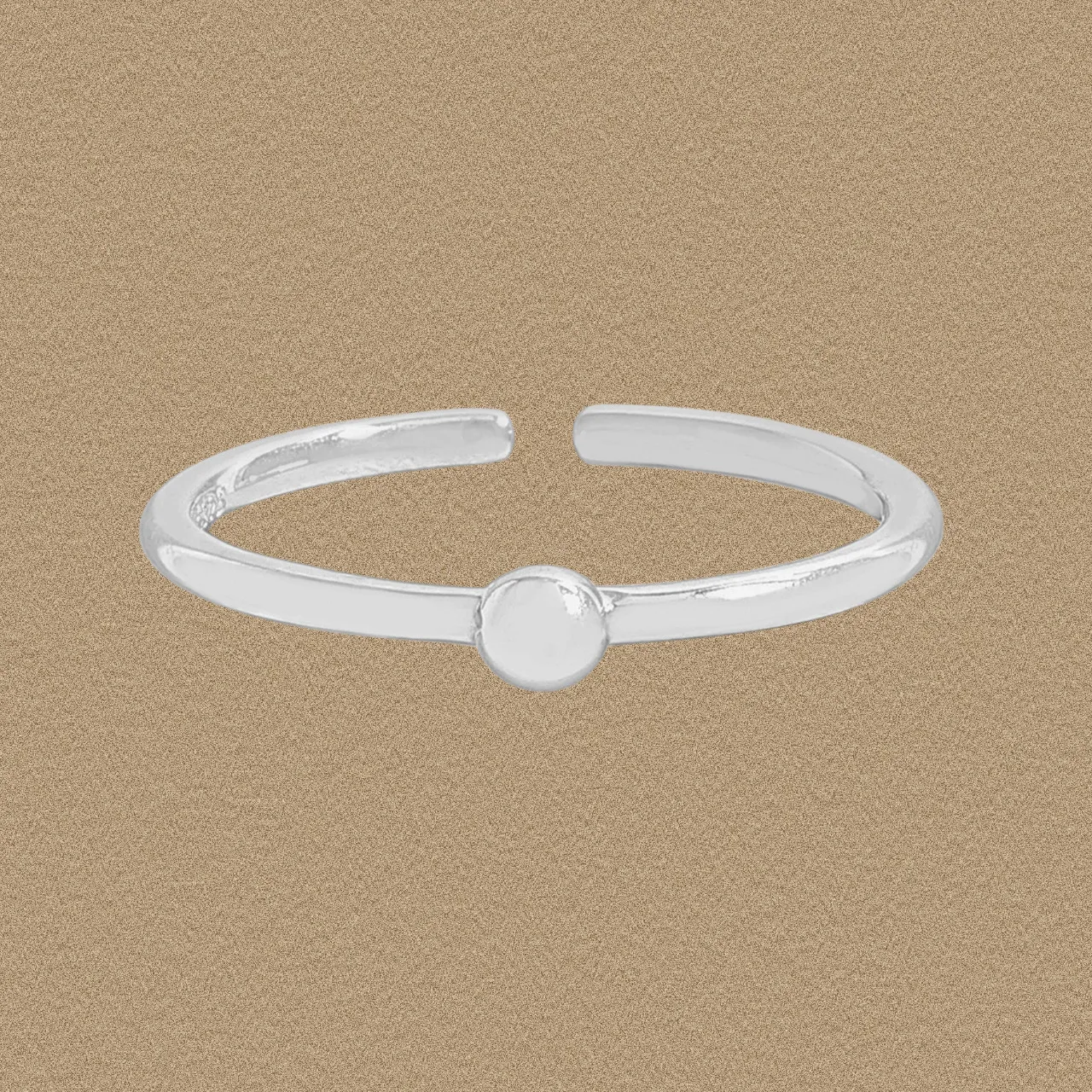 - Style: Featuring a contemporary open-ended design, this ring offers a graceful, fluid silhouette. A perfectly rounded, flat dot accentuates the center of the band, providing a subtle focal point that is both organic and refined. Its adjustable nature ensures a comfortable and versatile fit.