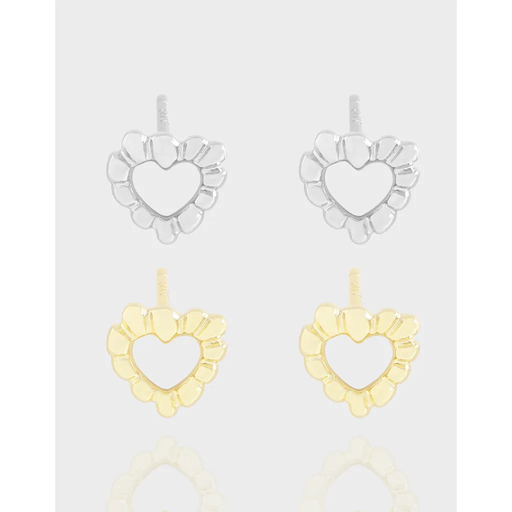 - Patterns or Textures: Each charm features a distinctive scalloped edge, creating a soft, undulating frame around a hollow heart silhouette. The surface is polished to a high shine, beautifully reflecting light with every movement.