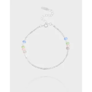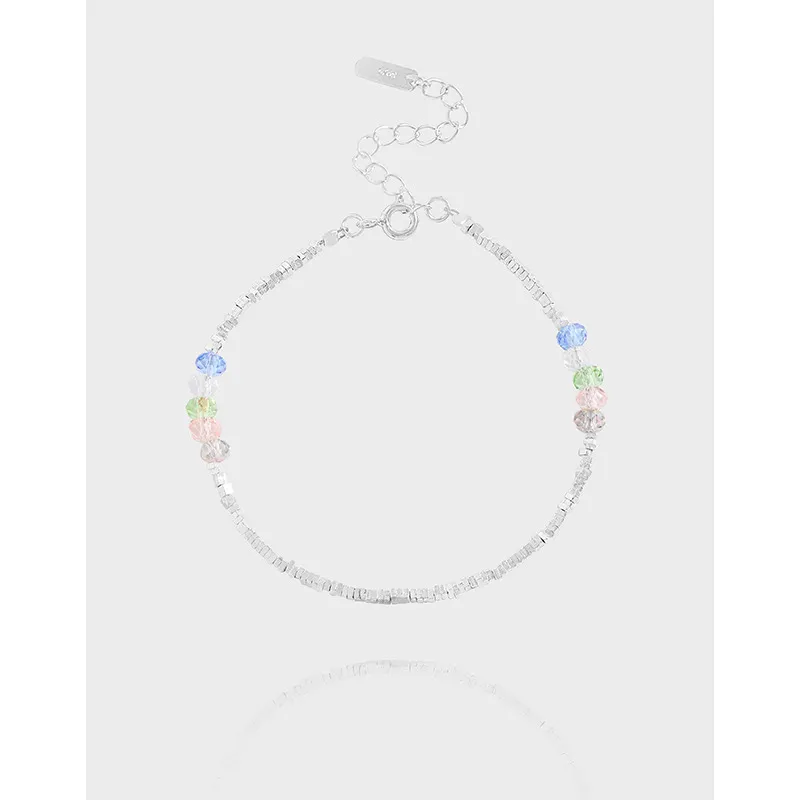 - Color: The Mylissara Bracelet features a radiant silver chain that provides a shimmering base. This is beautifully accented by a selection of small, round faceted beads in captivating celestial hues: vibrant blue, fresh green, soft pink, and clear, evoking the luminous palette of the northern lights.