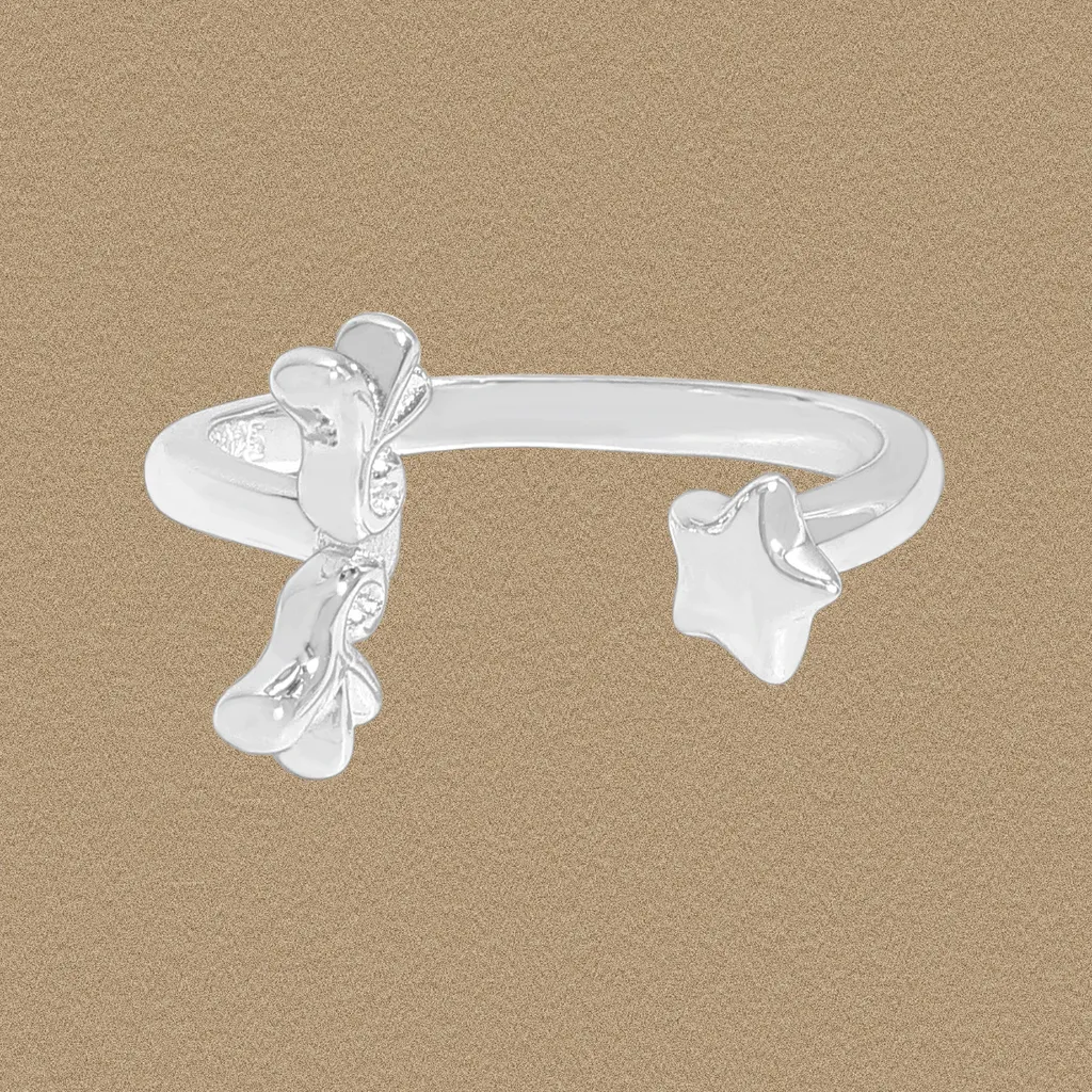 Embrace the enchanting fusion of earth and sky with the Malisse Celestial Petal & Star Ring. This exquisite piece, crafted in polished silver, captures the ethereal glow of moonlight and the timeless allure of nature’s artistry.