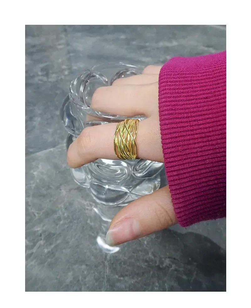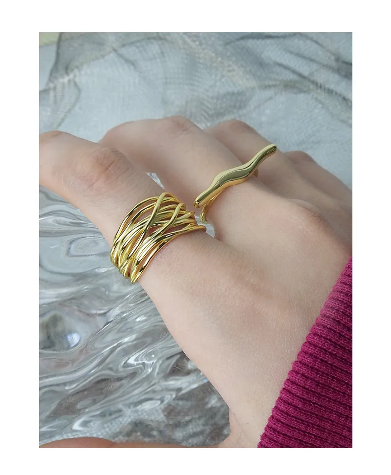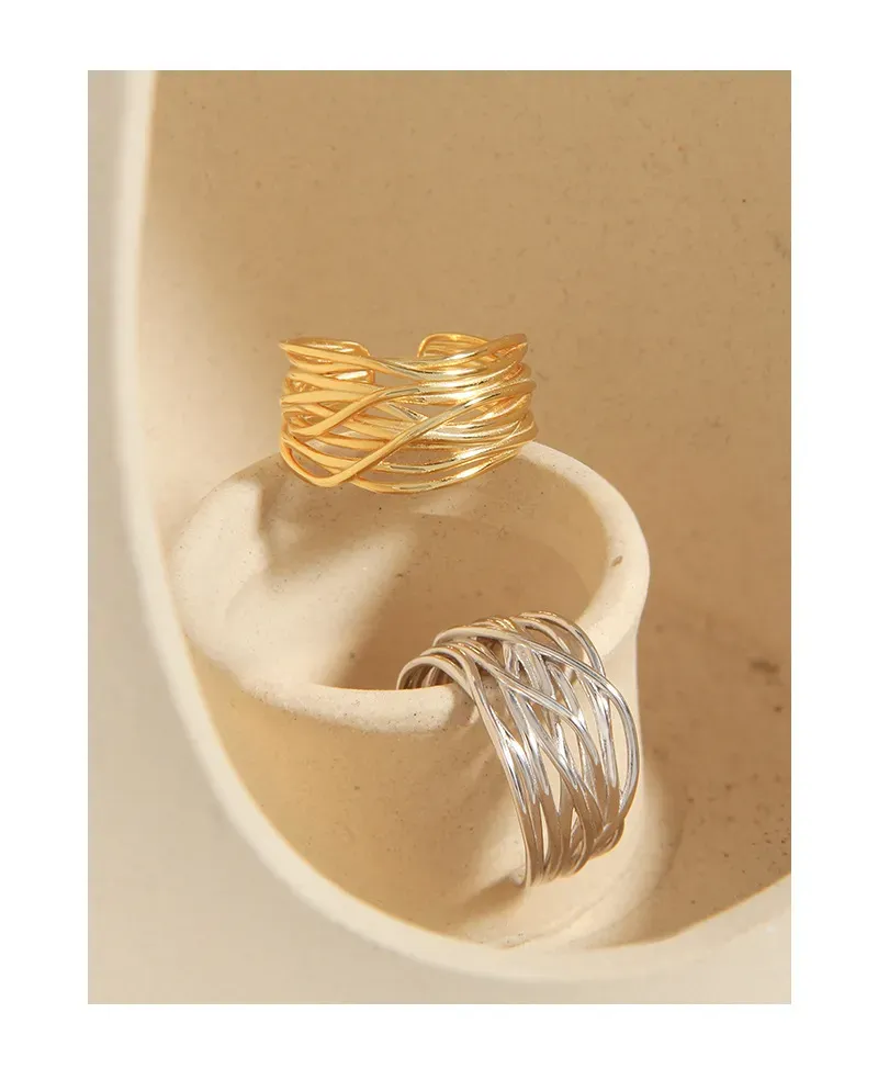 Embrace the ethereal beauty of nature with the Malisse Gold Intertwined Ring, a design inspired by the celestial dance of light.