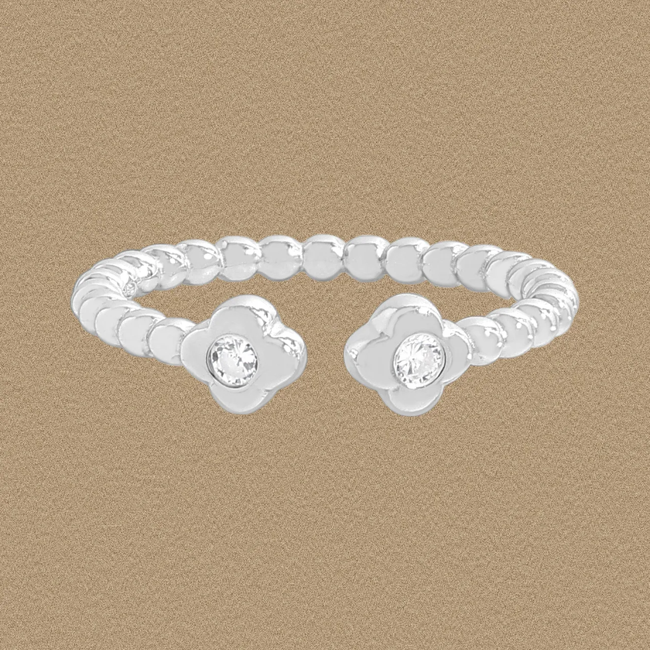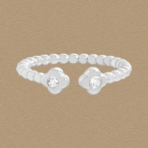 Patterns & Textures: The band features a continuous sequence of finely rounded, bead-like textures, creating an intriguing tactile and visual rhythm. Each end culminates in a beautifully sculpted four-petal flower motif, at the heart of which sits a captivating, faceted clear stone, radiating celestial shimmer.