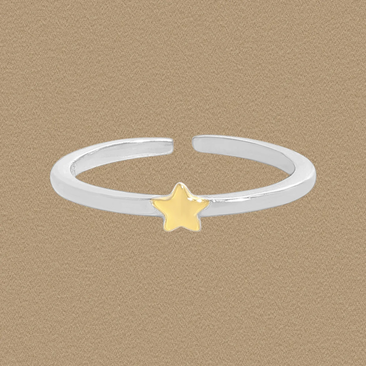 • Color: The ring features a lustrous silver band, beautifully contrasted with a radiant gold star. This harmonious combination evokes the luminous spectacle of a starlit night.
