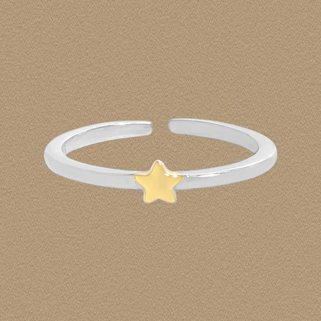 - Color: The ring features a lustrous silver band, beautifully contrasted with a radiant gold star. This harmonious combination evokes the luminous spectacle of a starlit night.