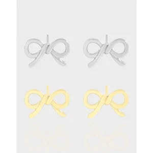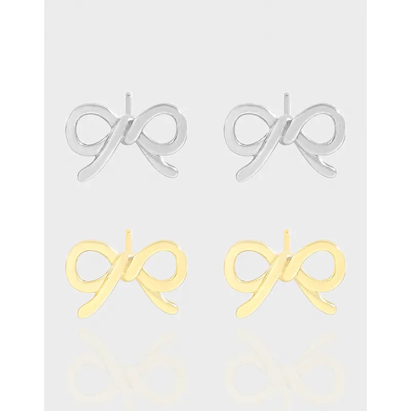 Elegant Bow Stud Earrings in Silver & Gold Tones
