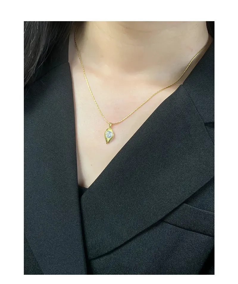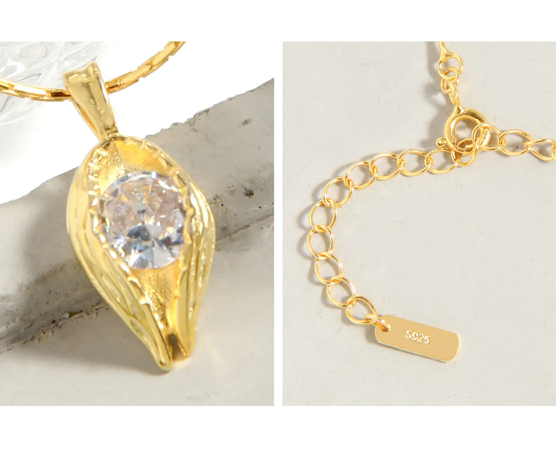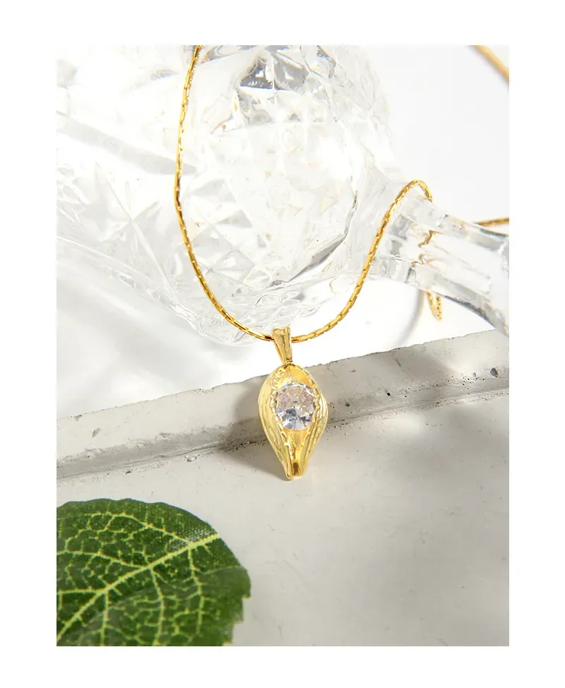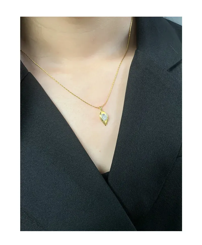 • Color: The Nahala Necklace features a rich golden hue across its chain and pendant, beautifully complemented by a brilliant, clear central gemstone.