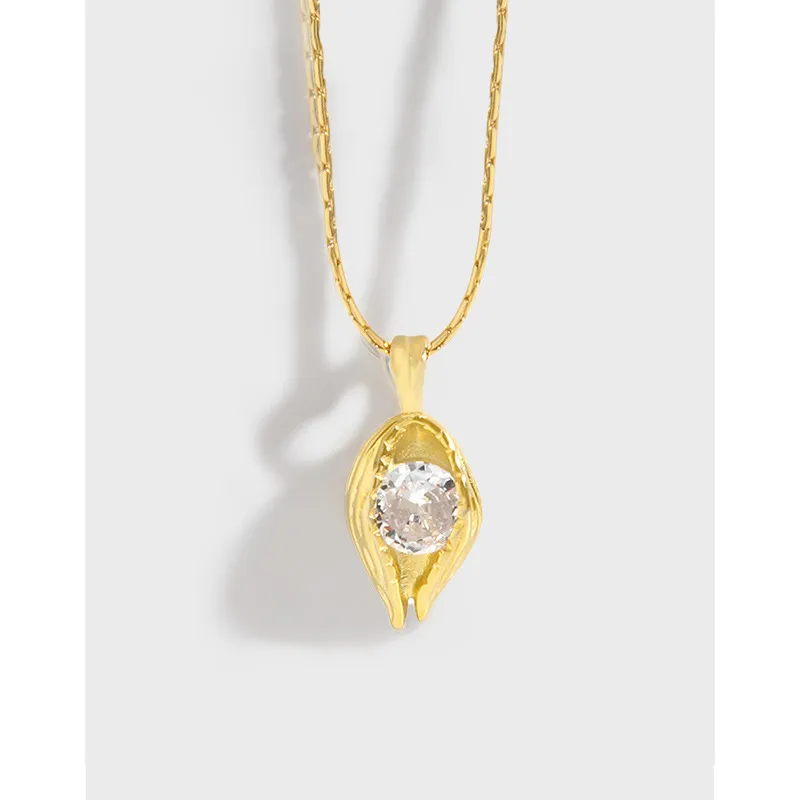 • Style: Embodying Malisse’s philosophy, this necklace boasts an organic, fluid style. The pendant’s design is reminiscent of a protective natural pod or gently unfolding petals, gracefully cradling the central stone.