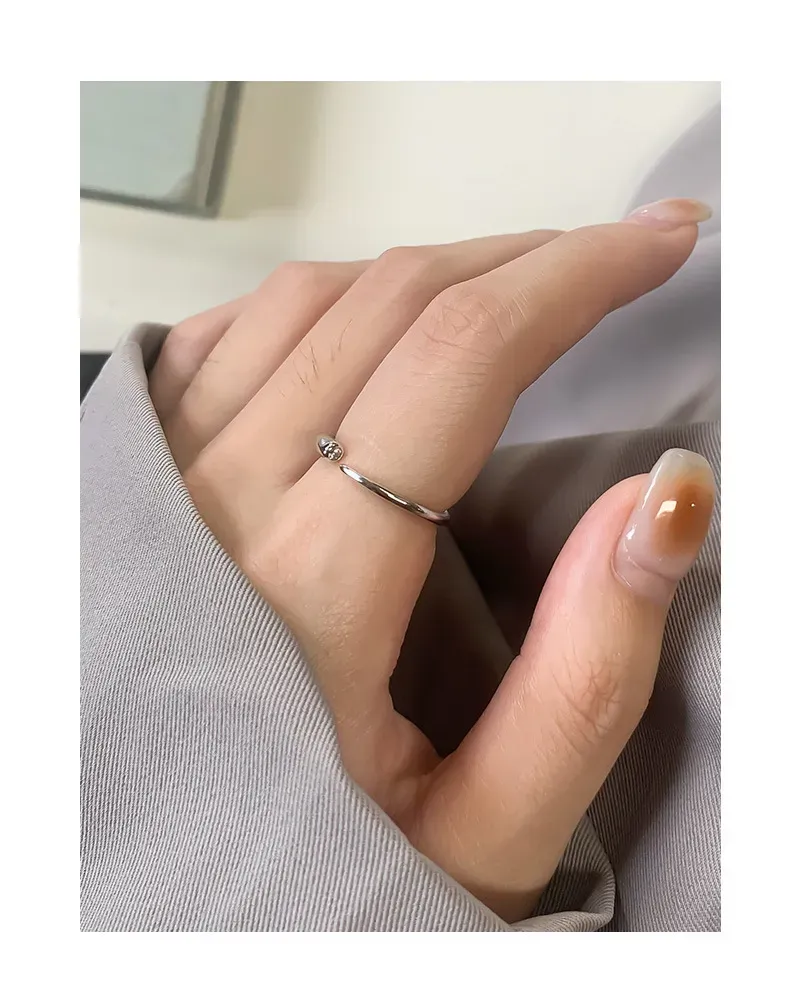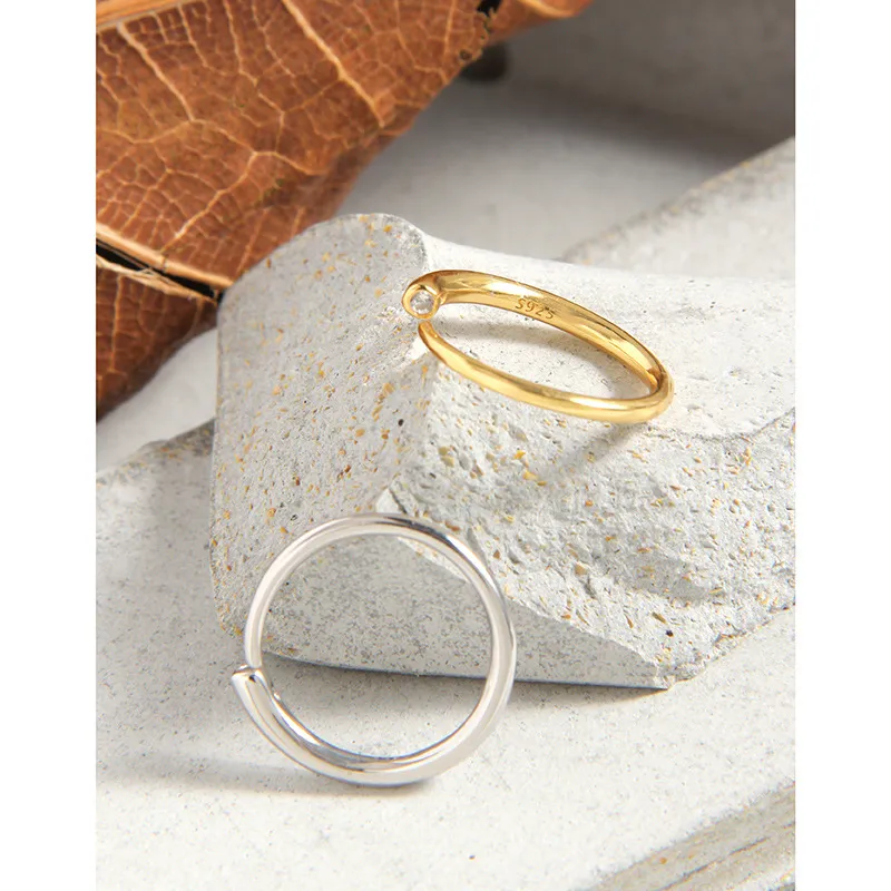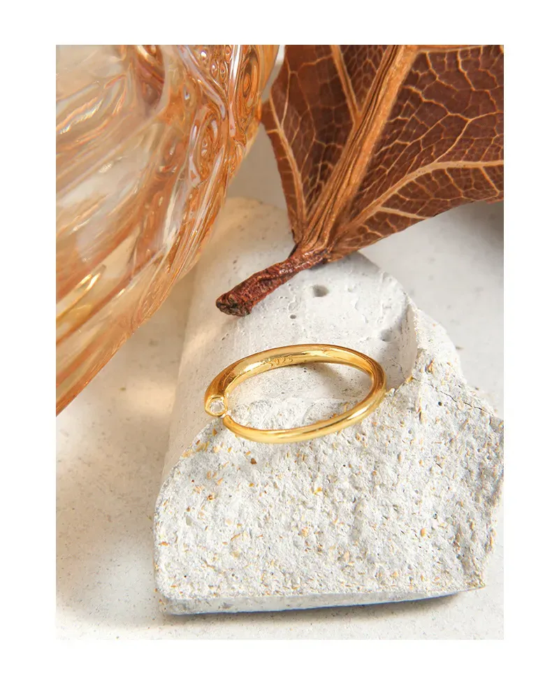 Its fluid, open-ended style mirrors the organic grace found in nature, allowing for a comfortable and adaptable fit. The minimalist design is beautifully adorned with a single, brilliant clear gemstone set at one end, reminiscent of a shimmering star.