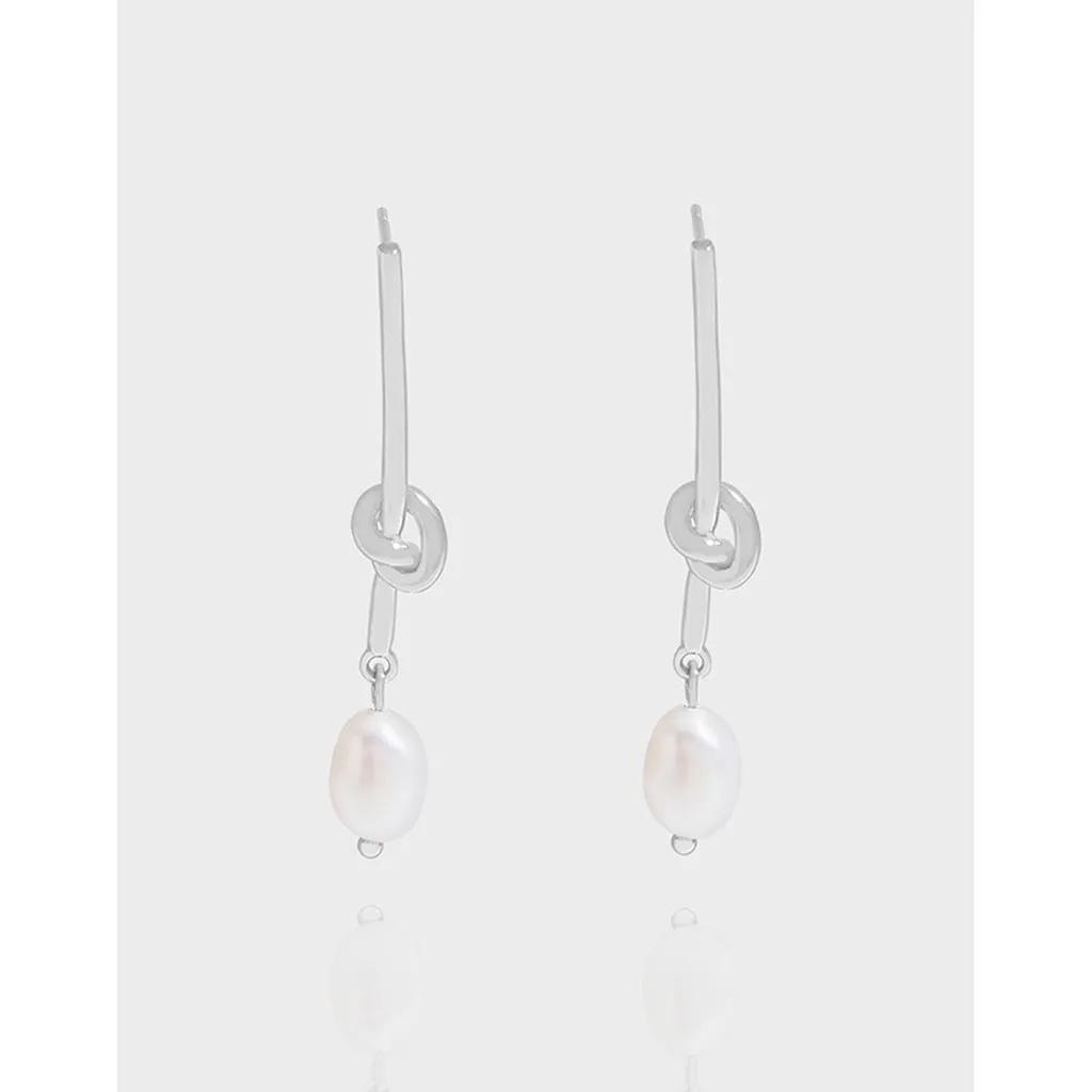 Malisse Silver Knot Pearl Dangle Earrings