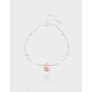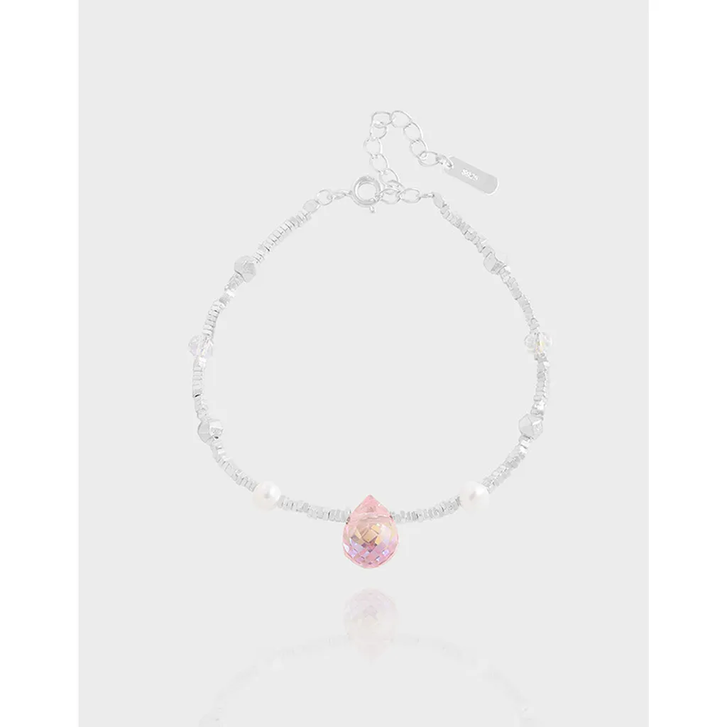 Celestial Pink Teardrop & Silver Bead Bracelet