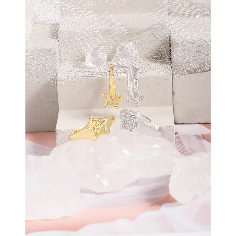 • Patterns or Textures: The striking star detail showcases a finely crafted radial texture, evoking the shimmering brilliance of a distant star or the ethereal glow of celestial light. The rest of the ring offers a sleek, polished finish for a comfortable and luxurious feel.