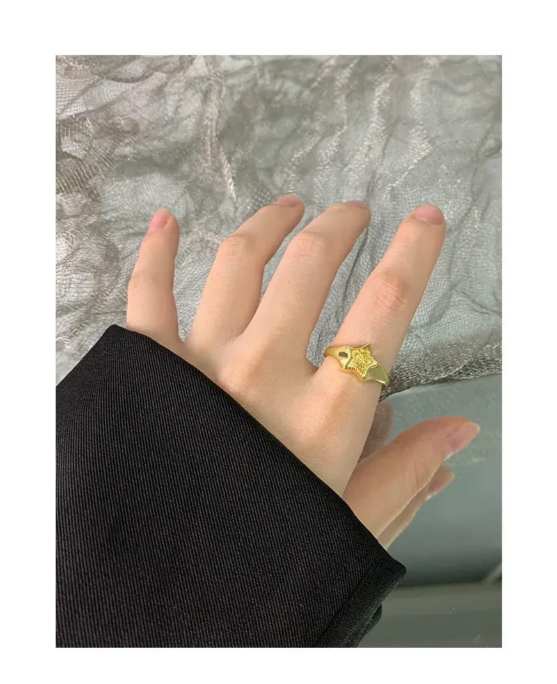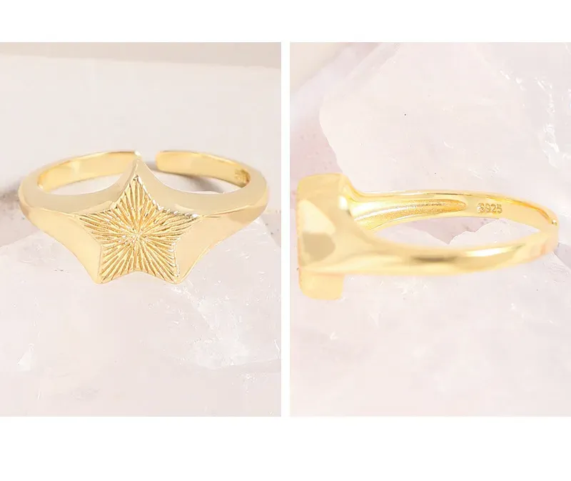 • Style: A captivating blend of modern elegance and cosmic inspiration, this adjustable open-band ring features a prominent star emblem, offering both comfort and a statement-making look.