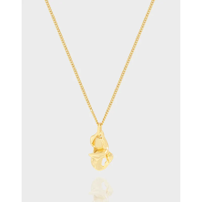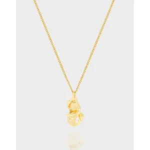 - Patterns or Textures: The pendant boasts raw, undulating textures and gracefully fluid shapes, giving it a captivating, almost liquid appearance. Its polished finish highlights the delicate balance of its irregular folds and curves, creating a dynamic play of light and shadow. The elegant curb chain provides a subtle yet sturdy foundation, completing this timeless piece.