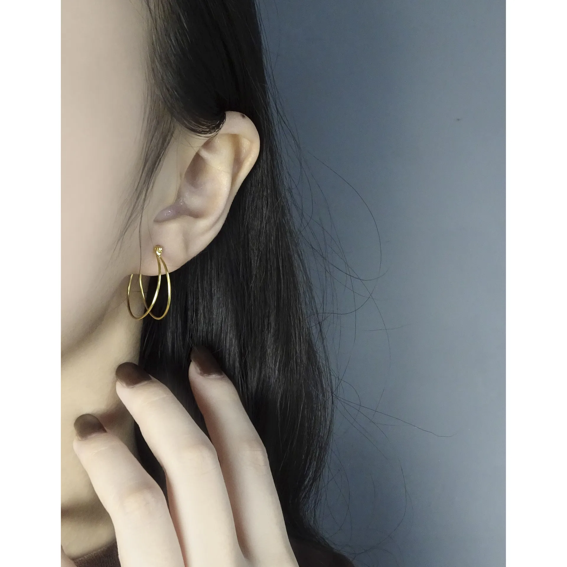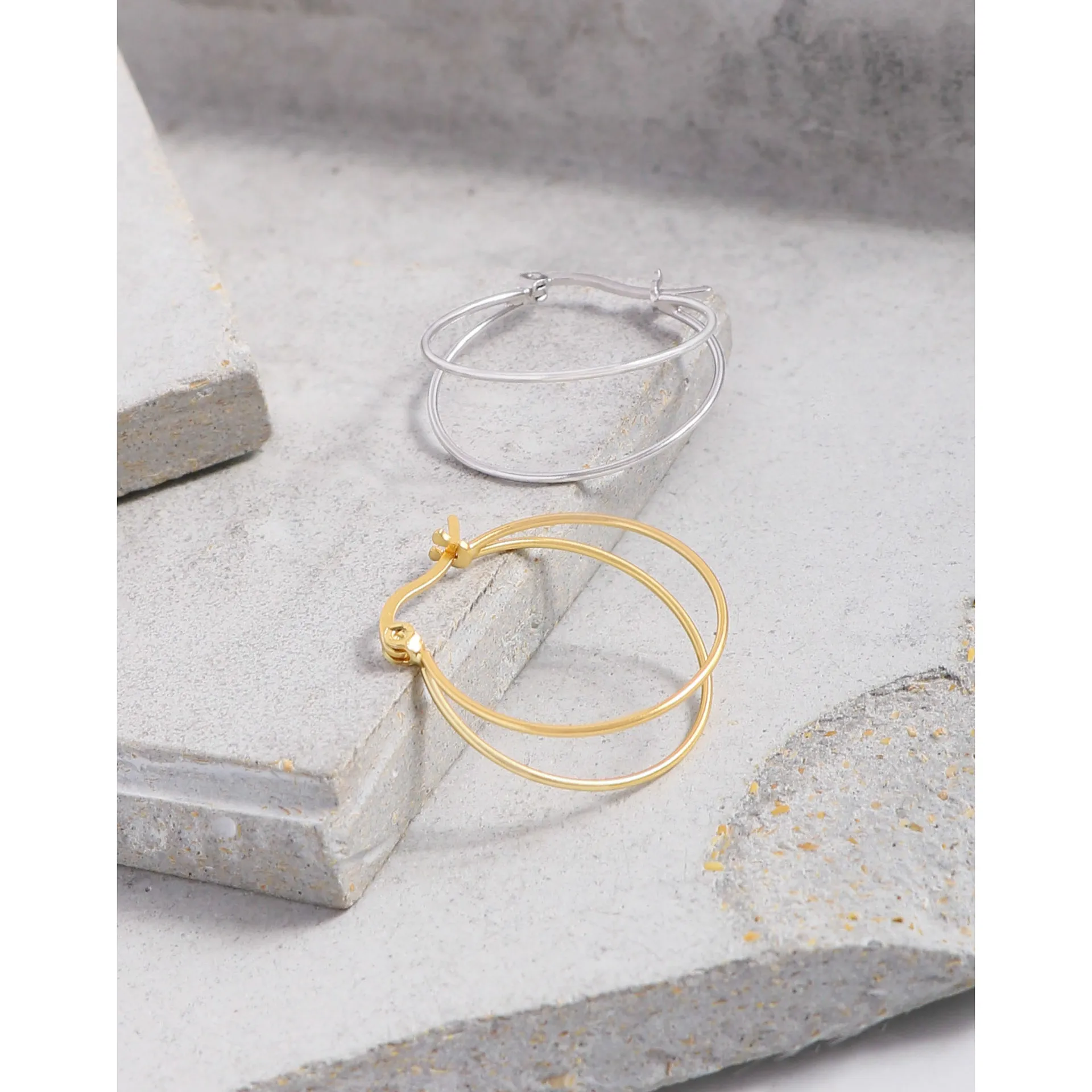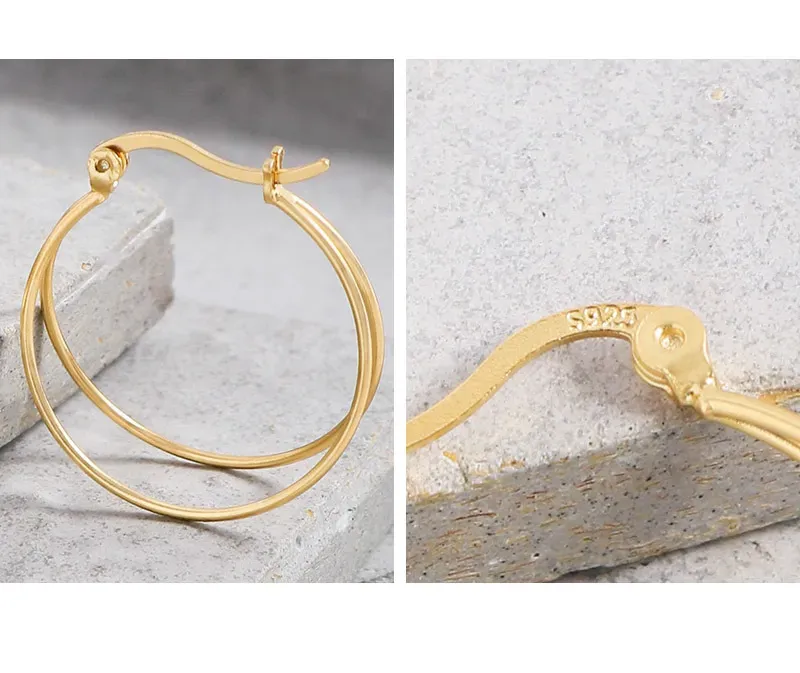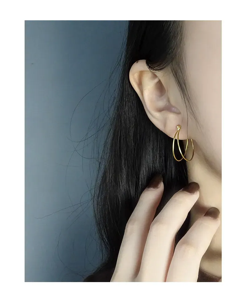 • Patterns & Texture: Each delicate hoop boasts a perfectly smooth, polished surface, designed to play with light. The intertwining double-hoop structure creates a subtle, layered pattern, reminiscent of natural movement.