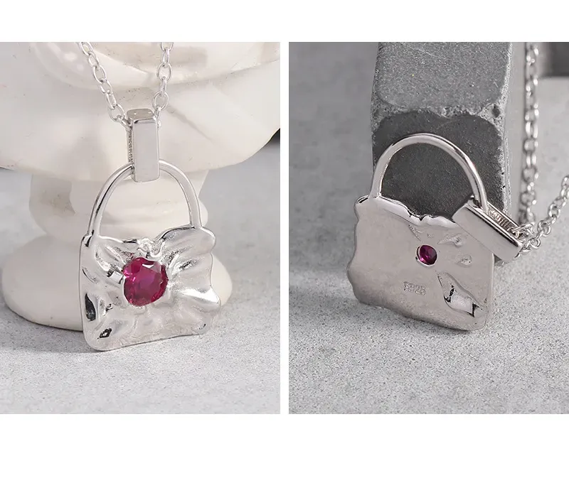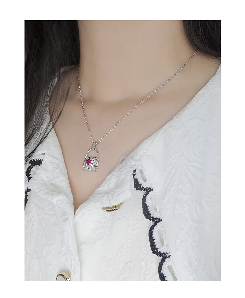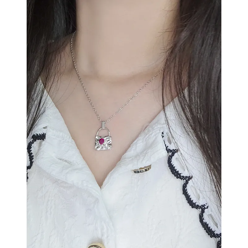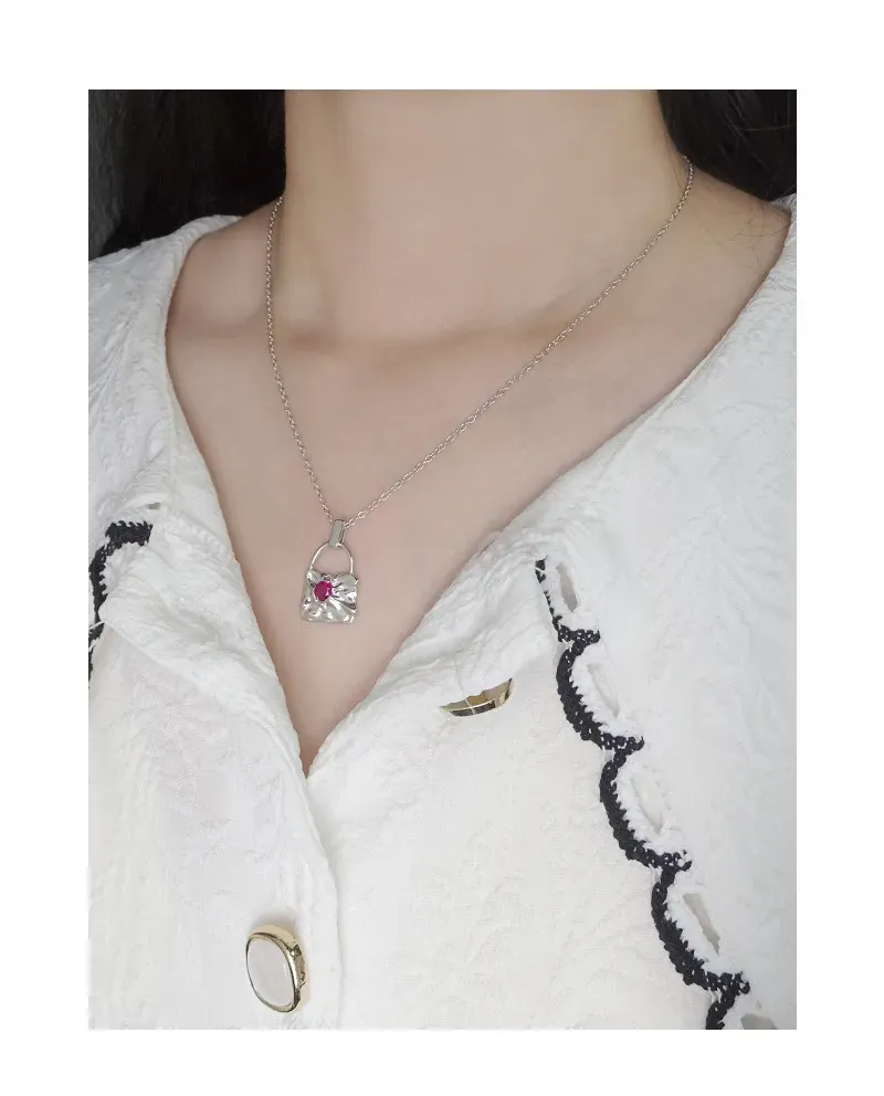 • Patterns or Textures: The pendant boasts a uniquely raw and artisanal texture. Its surface is characterized by an intentionally uneven, molten-like finish with organic depressions and raised contours that catch the light. Intricate, wave-like patterns subtly radiate from the ruby, evoking the dynamic energy of natural elements or the subtle shimmer of the night sky.