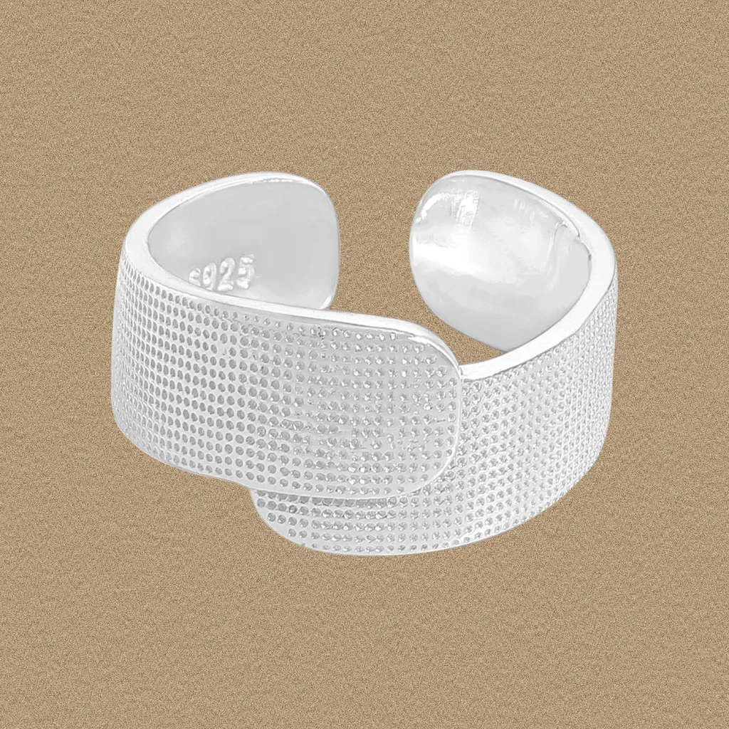 Embrace the ethereal beauty of the cosmos with this captivating silver open-end cuff ring, a testament to nature’s artistry.