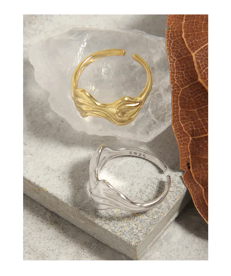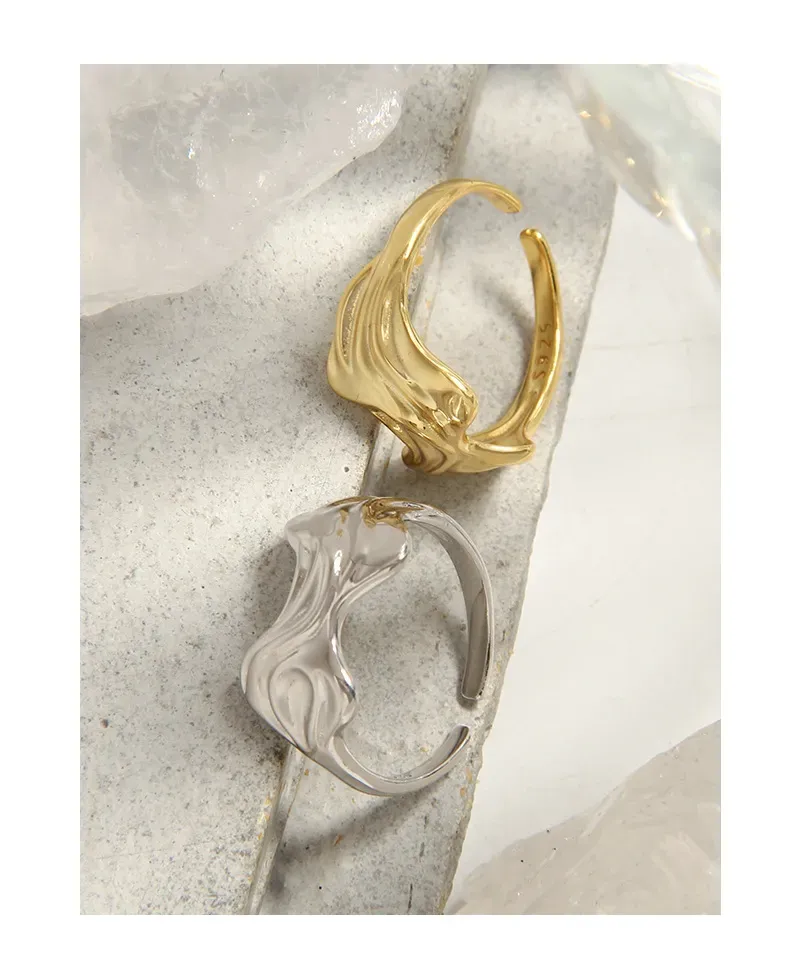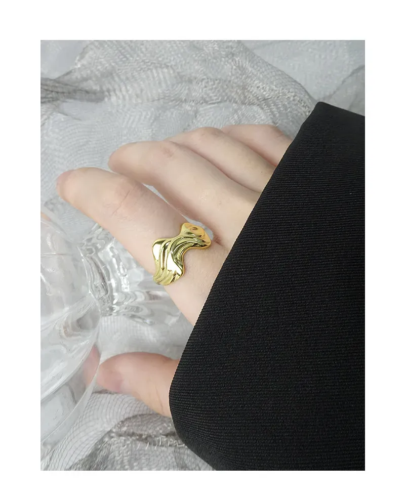 - Style: Uniquely sculptural and modern, featuNola Ring an undulating, wave-like form that gives the impression of liquid gold in motion. This organic design flows effortlessly, embodying a sophisticated yet natural elegance.