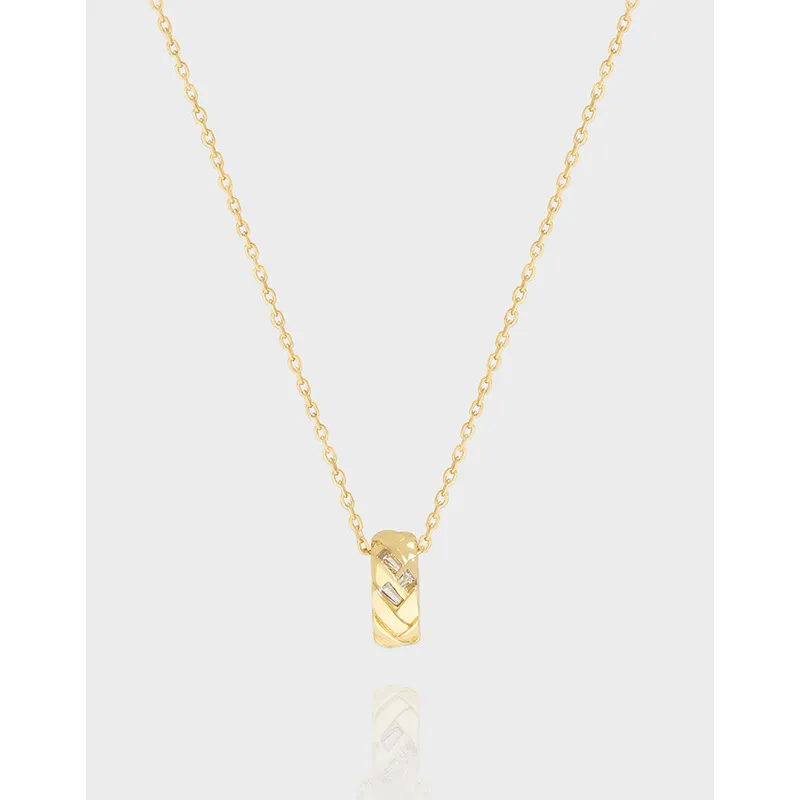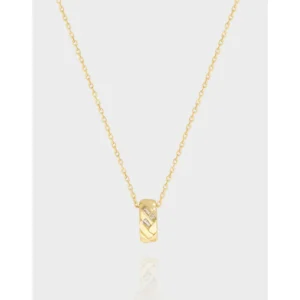- Patterns & Textures: The unique pendant features an intricate braided texture, reminiscent of natural weaves. This organic pattern is beautifully contrasted by three subtly shimmering baguette-cut stones, set to catch the light with celestial brilliance, creating an effect as enchanting as the northern lights.