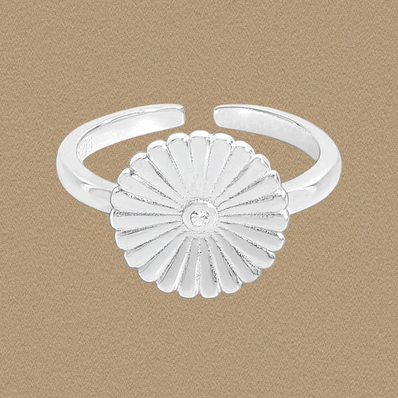 Embrace the enchanting beauty of nature with the Malisse Radiant Bloom Silver Adjustable Ring. Crafted in luminous silver, this exquisite piece captures the ethereal glow of celestial moments, much like the northern lights that inspire our collection.