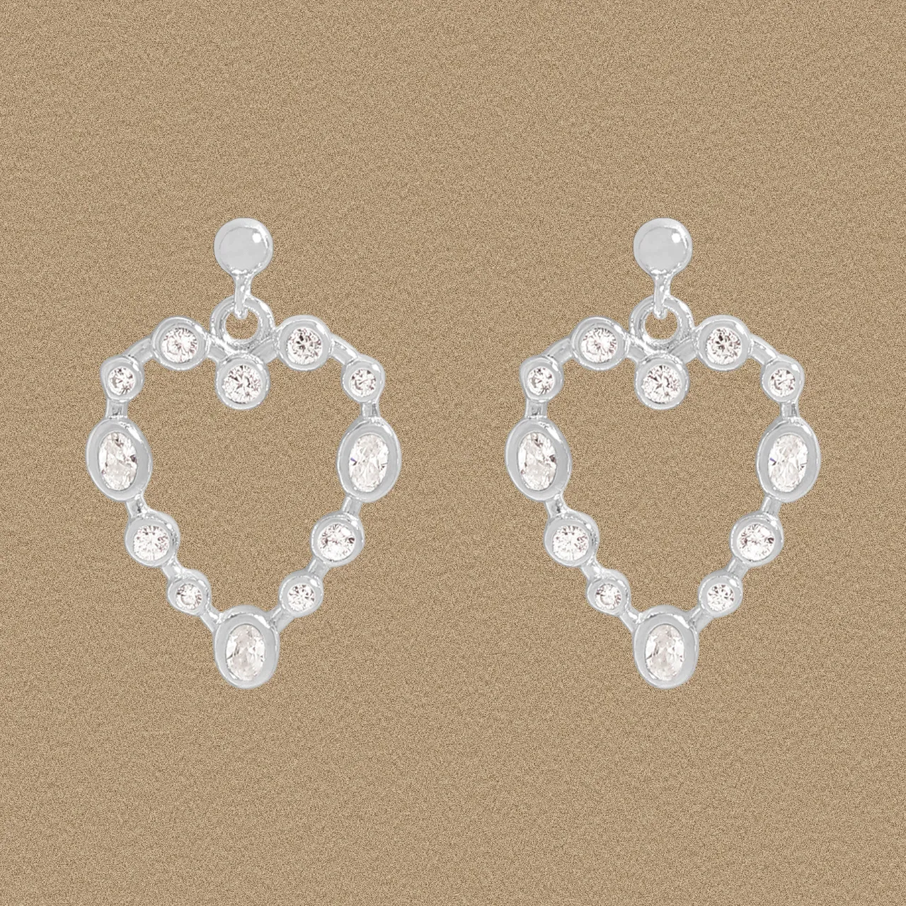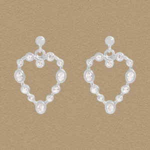 Discover the enchanting allure of these Malisse heart-shaped drop earrings, meticulously crafted in a lustrous silver-toned metal. Each earring features a graceful outline, formed by a harmonious constellation of brilliant clear stones. Round and oval-cut gems are bezel-set, creating a fluid and organic silhouette that captures the essence of celestial beauty.