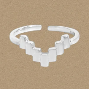 Embrace the modern allure of Malisse with this striking silver ring, where celestial inspiration meets contemporary design. Its captivating V-shape is crafted from a series of interconnected, pixelated blocks, creating a distinctive geometric pattern that echoes the intricate formations found in nature and the fragmented beauty of the aurora’s dance. This design embodies the brand’s commitment to captuNyselle Ring nature’s magic and the timeless allure of its artistry.