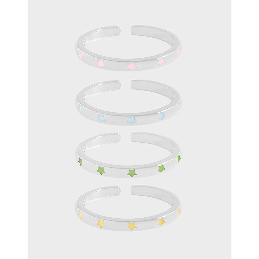 • Color: Each polished silver-toned band features a captivating array of pastel stars. Choose from the serene hues of light pink, tranquil light blue, fresh light green, or luminous light yellow, reminiscent of the ever-changing brilliance of the aurora borealis.